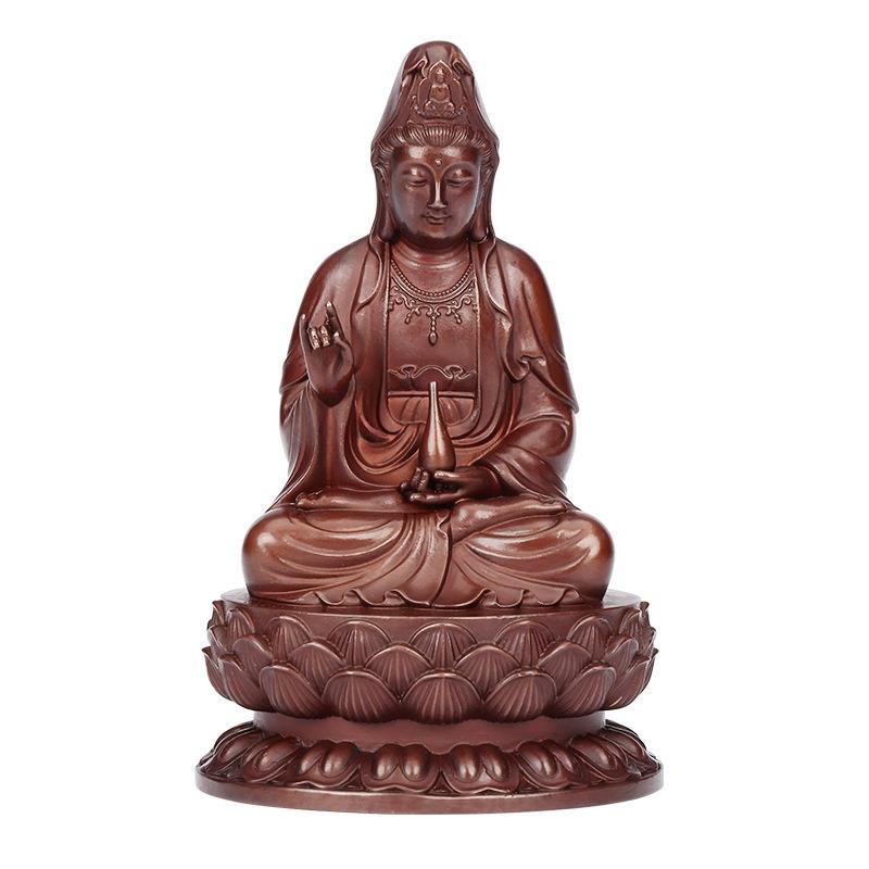 紫铜观音菩萨坐像 家居办公室桌面迷你观世音佛工艺品摆设