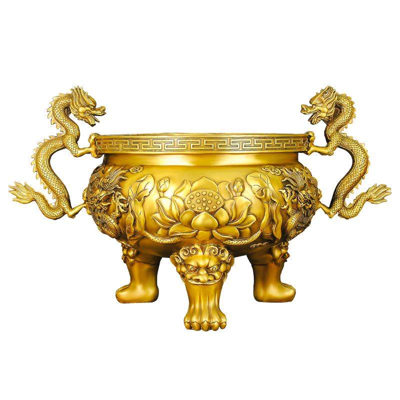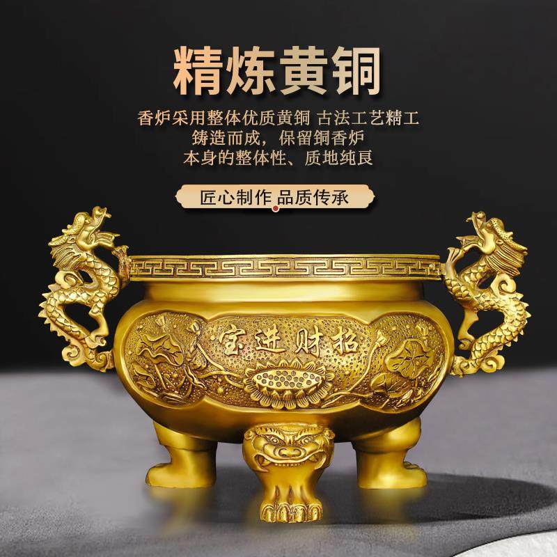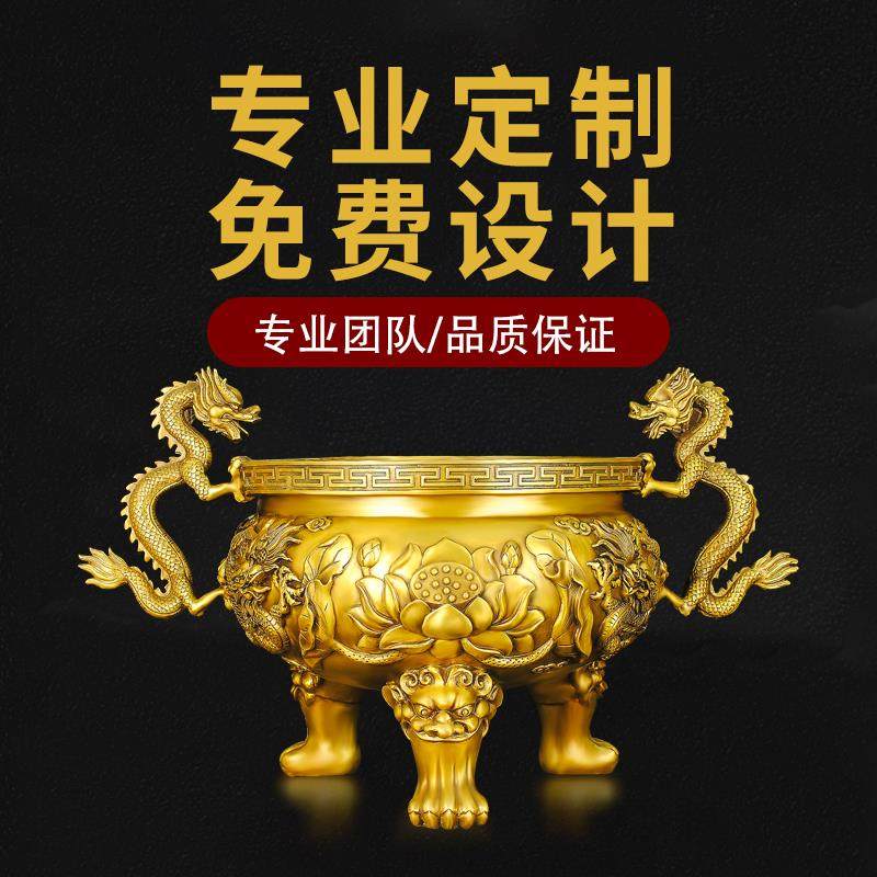 铜香炉摆件三足鼎莲花九龙黄铜居家客厅寺庙佛堂祠堂桌面室内定制