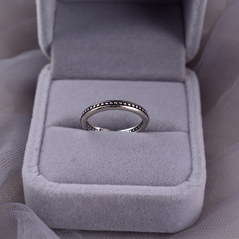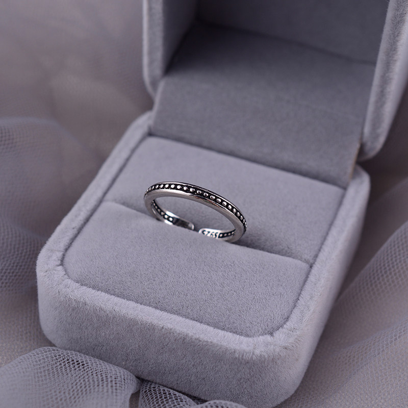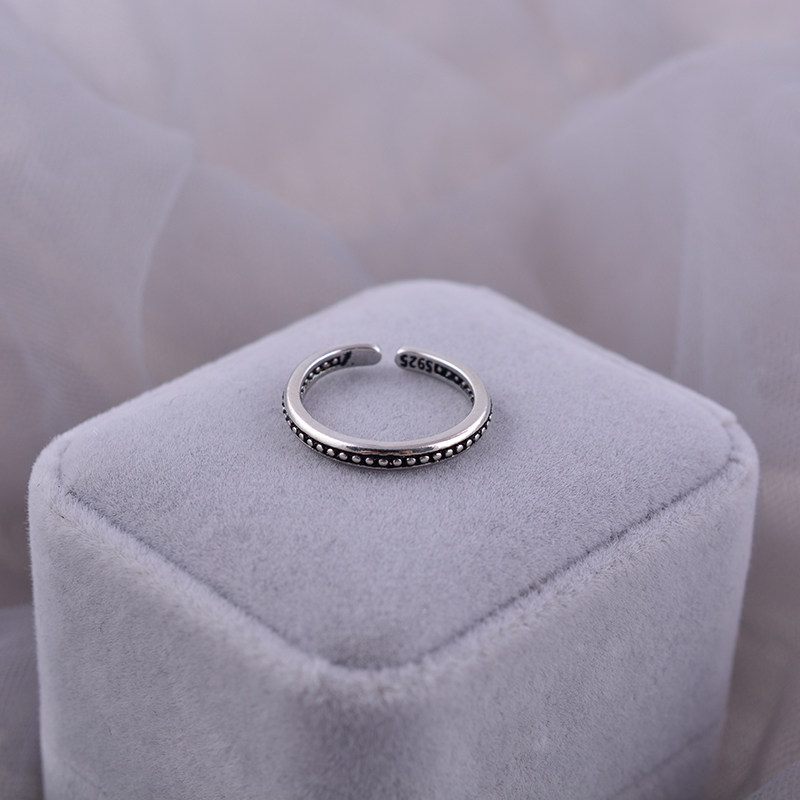 s925纯银复古圆点戒指女简约个性轻奢小众设计指环开口戒素圈素戒