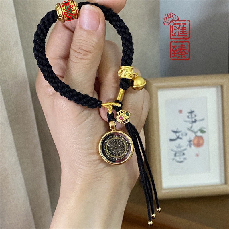 黑金原创藏式小唐卡手绳铃铛流苏款男女情侣可定制