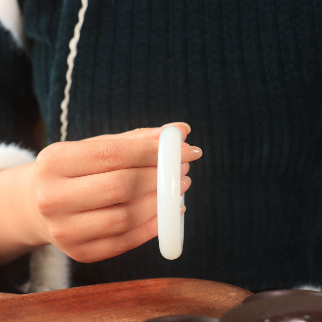 新疆和田玉老坑山料羊脂白玉镯宽版平安镯女款正圈手镯天然玉石