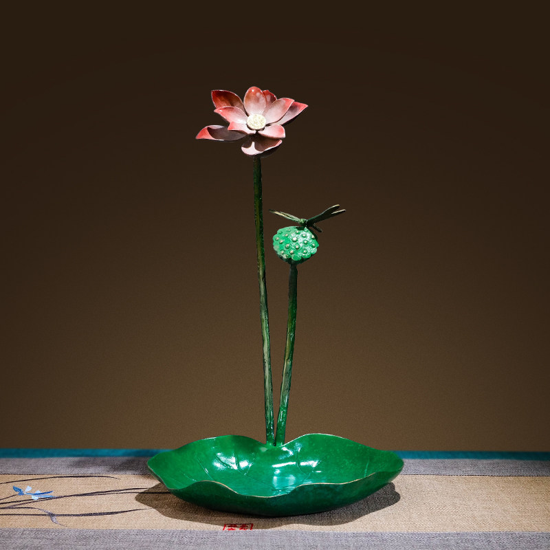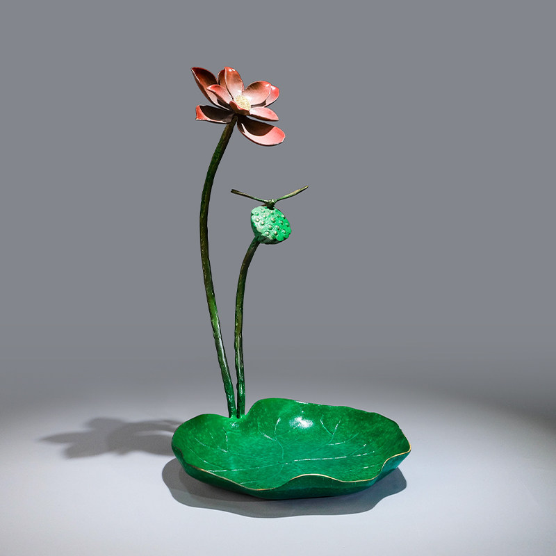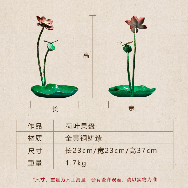 《荷叶果盘》铜金岁月黄铜摆件工艺品铜器新中式家居客厅桌面装饰