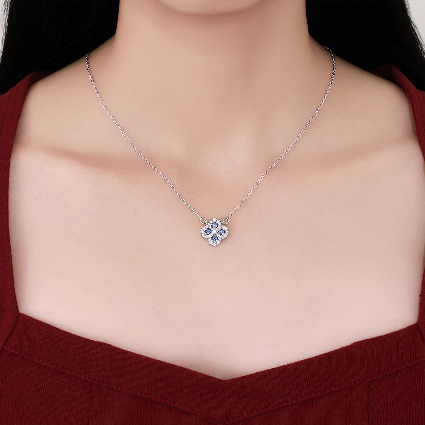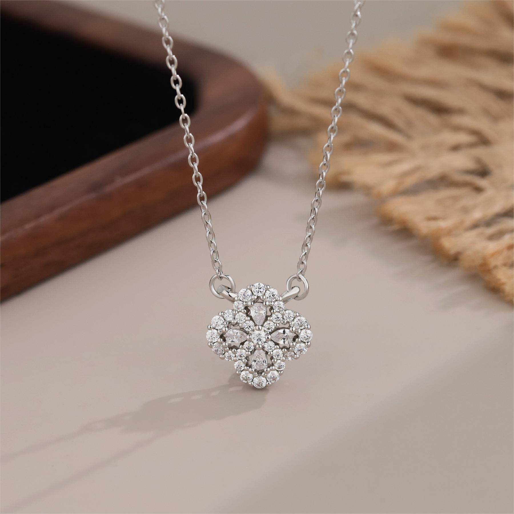幸运四叶草吊坠项链满钻红色毛衣链镀纯银送女友情人节礼物小香风