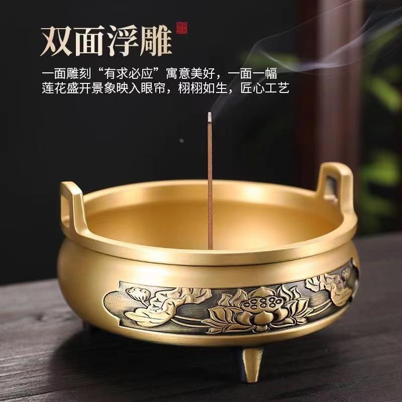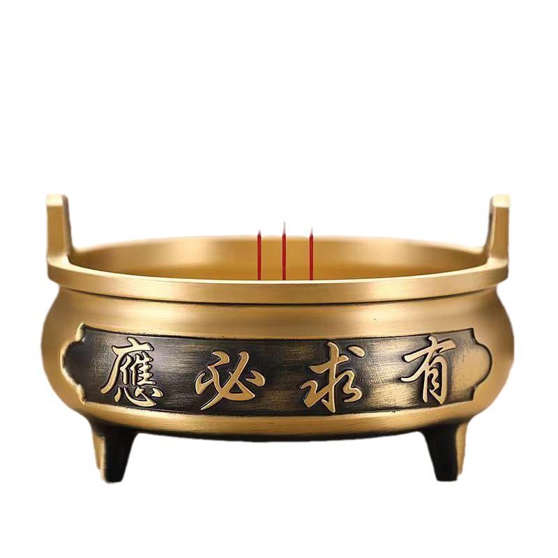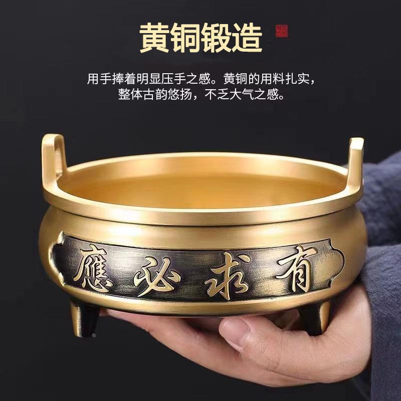 黄铜香炉家用室内上香插香供奉三足炉摆件黄铜带字有求必应香炉定