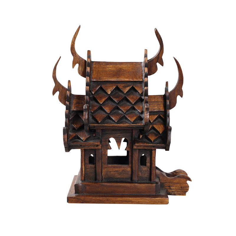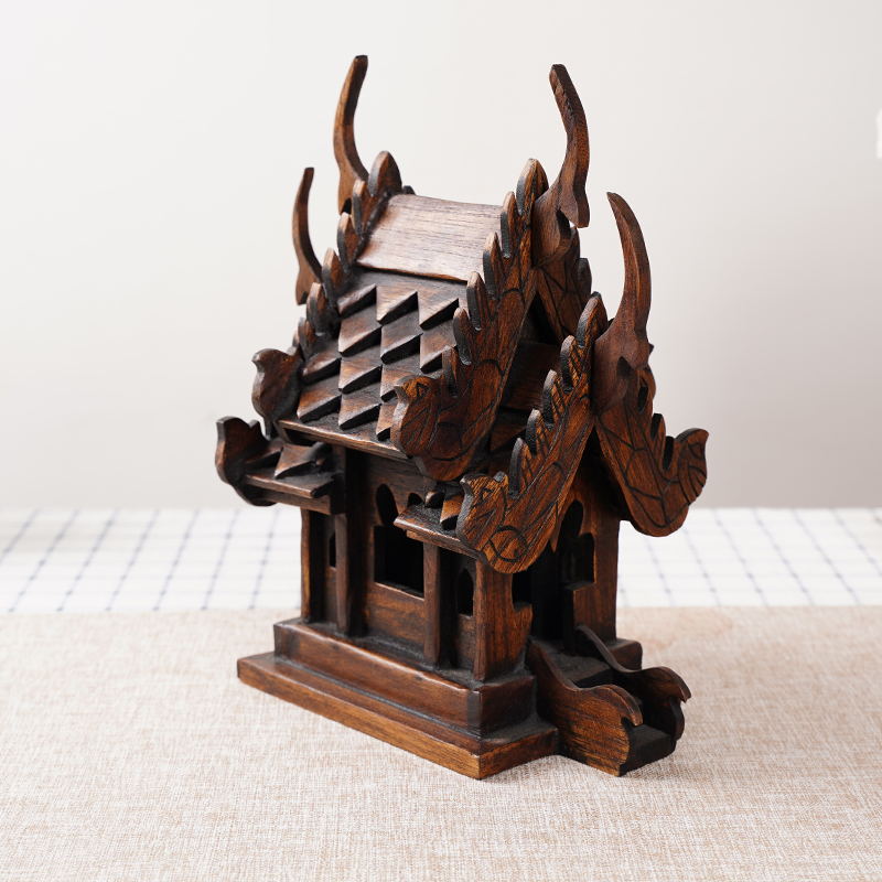 创意进口实木桌面房子摆件泰式古建筑木屋模型客厅茶几装饰品摆设