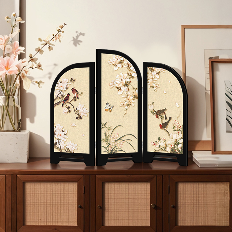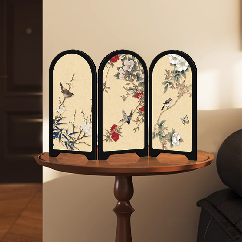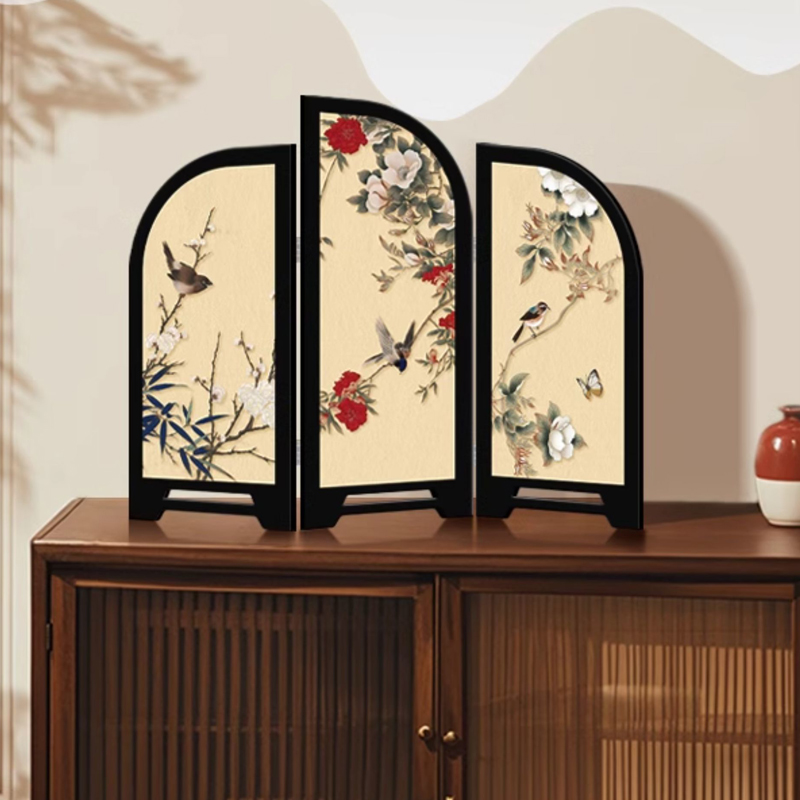 新中式花鸟屏风桌面摆件创意装饰画中古风摆画可折叠礼物2025新款