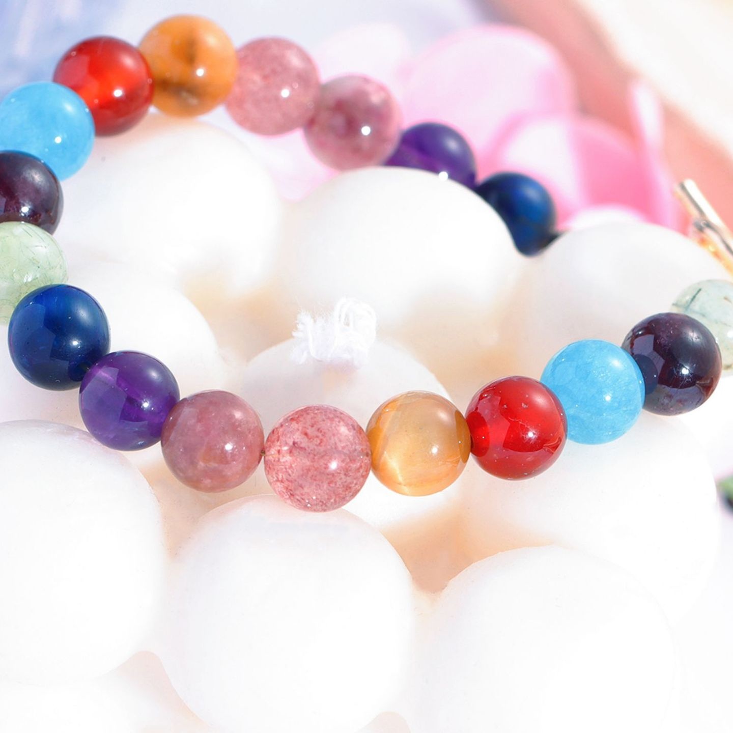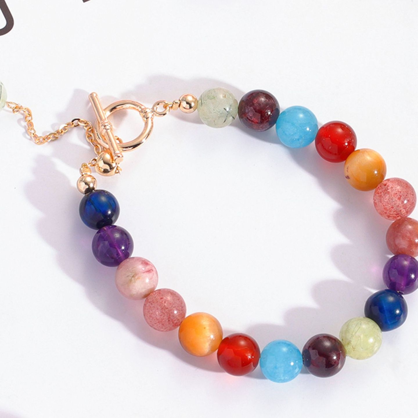 新款金草莓发晶红玛瑙糖果多宝手串彩虹宝石水晶手链女