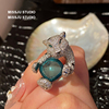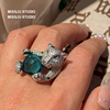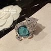 镶满钻豹头豹子绿钻戒指碎钻裂纹时尚霸气饰品质感精致适合手指粗