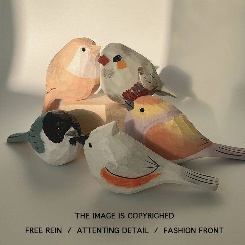 Xiaofeijiu! Wooden carved birds, pure handmade solid wood t