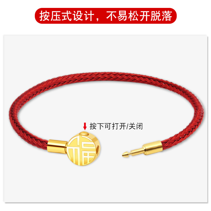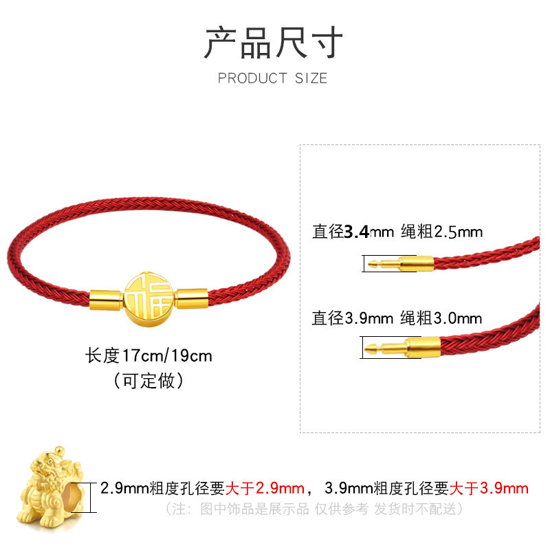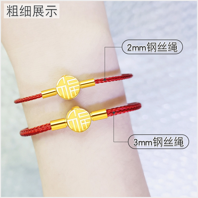 3.0/2.5mm防水钢丝绳福字手链女周生手绳可穿转运珠复古红绳钛钢
