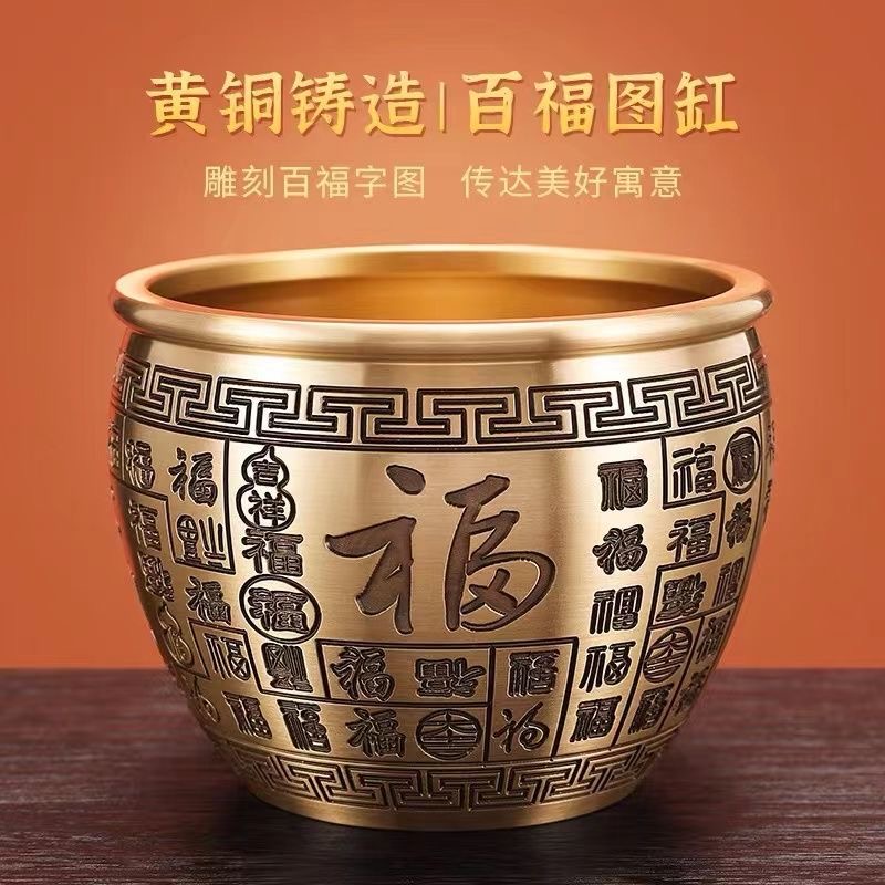黄铜聚摆宝件盆百福铜缸实心家居客厅店铺开业送礼乔迁办公正品摆