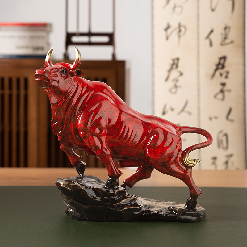 牛摆件牛气冲天炒股市客厅电视柜铜工艺品乔迁新居公司开业礼品