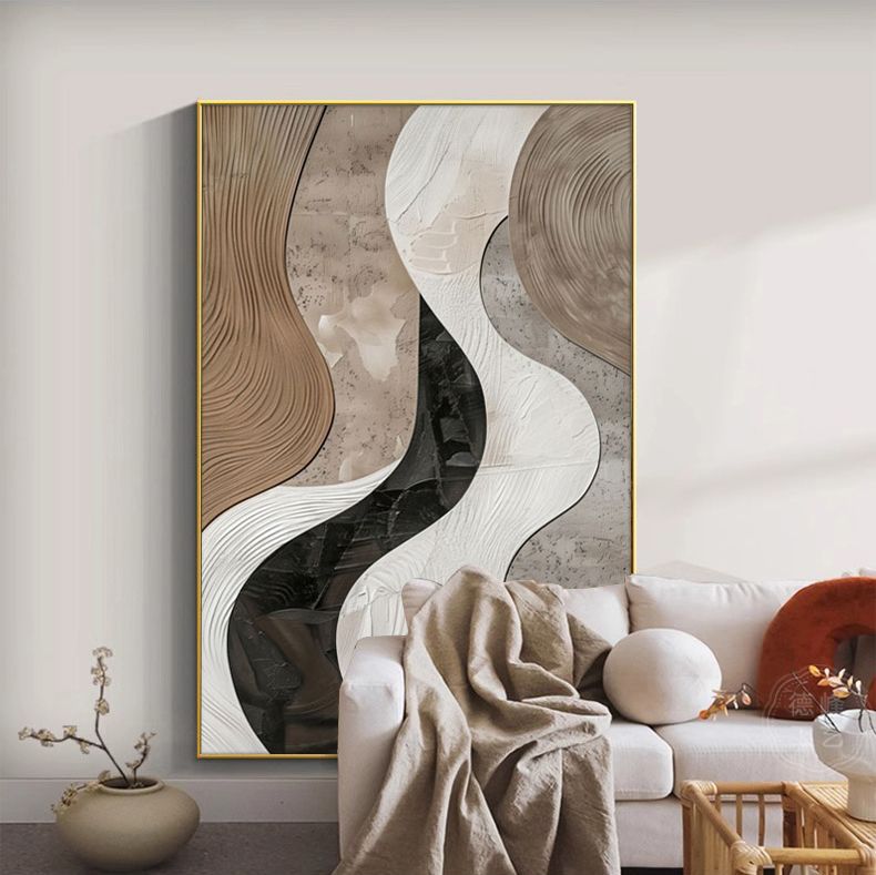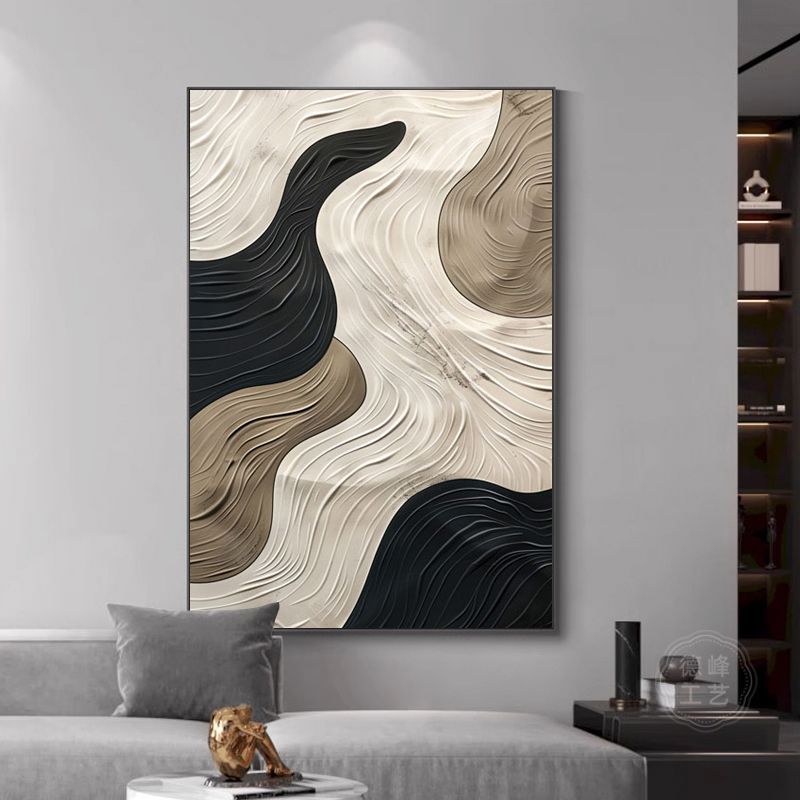 现代简约客厅装饰画黑白灰抽象沙发背景墙落地壁画高级感玄关挂画