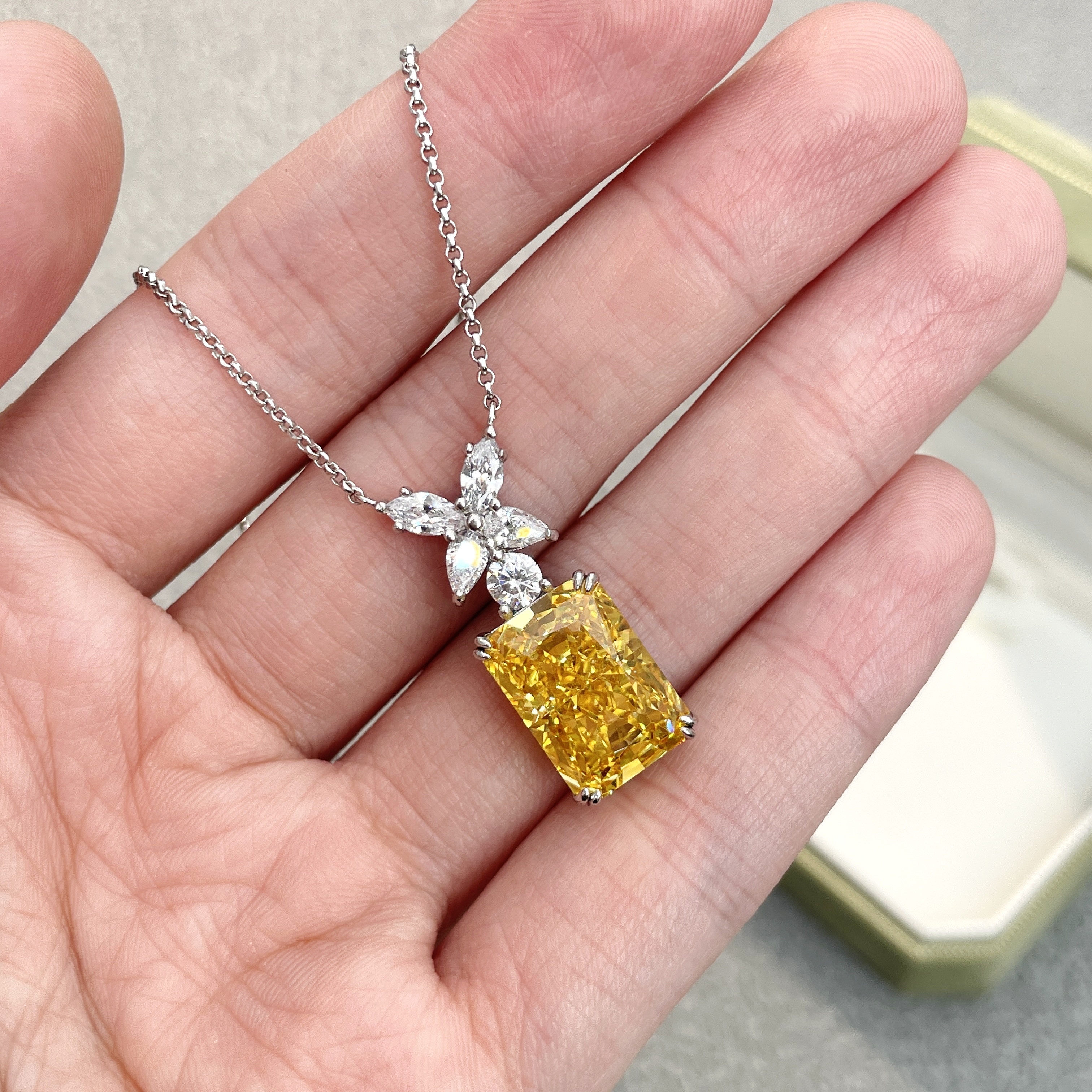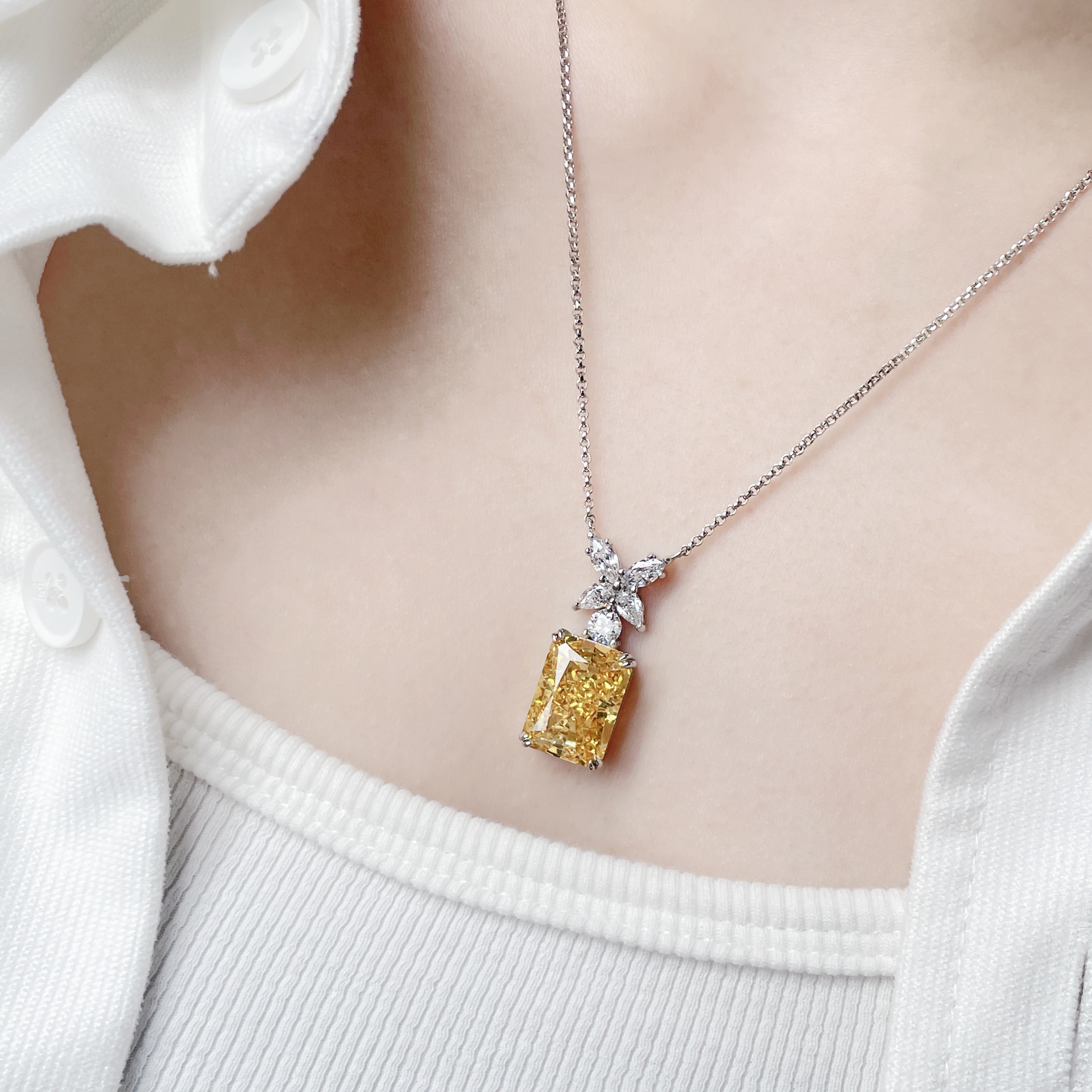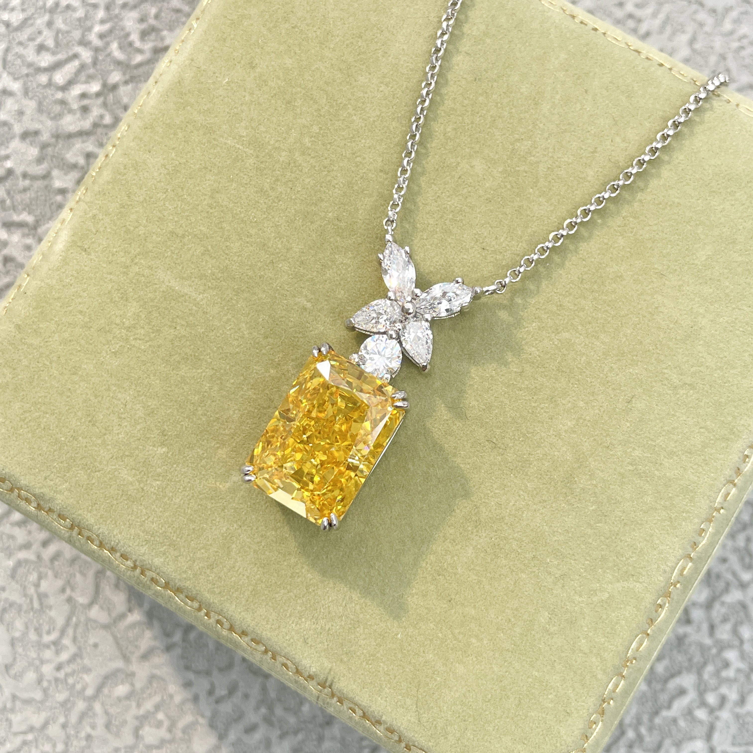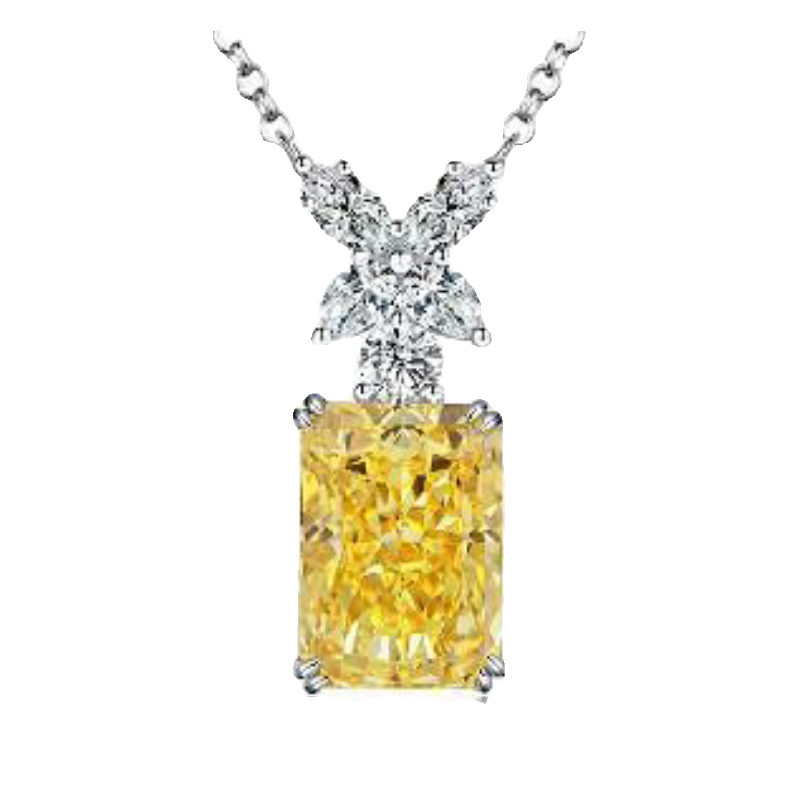 10克拉纯银s925进口高碳钻项链雷迪恩切艳彩黄钻方形简约气质吊坠