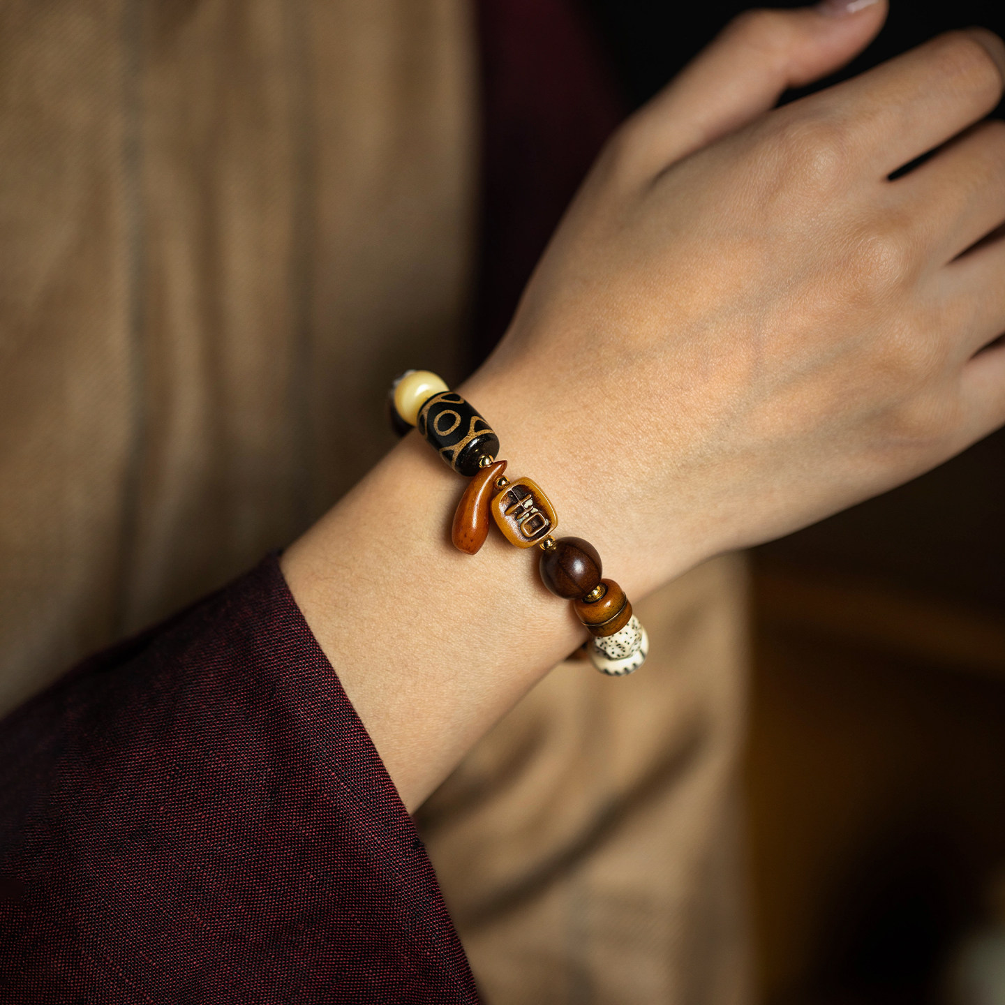 【设计款】天然檀木玛瑙手串菩提手链文玩木质念珠手饰男女礼物