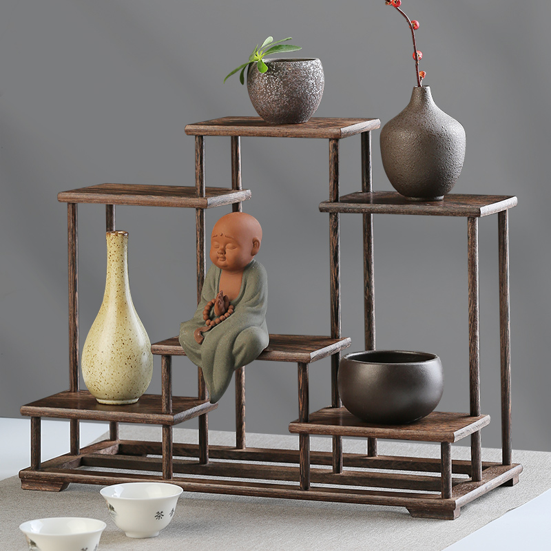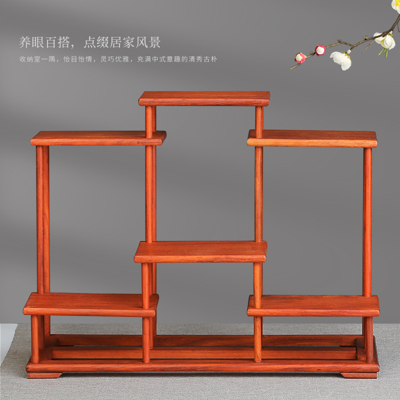 新中式实木质博古架置物架子 y红木客厅桌面茶壶展示柜子茶桌摆件
