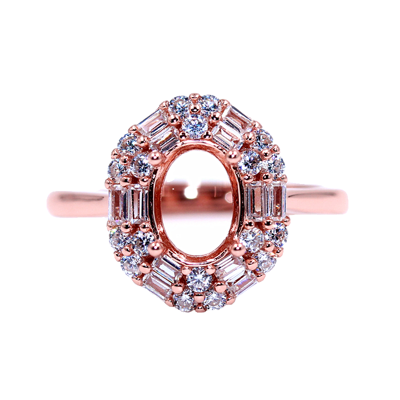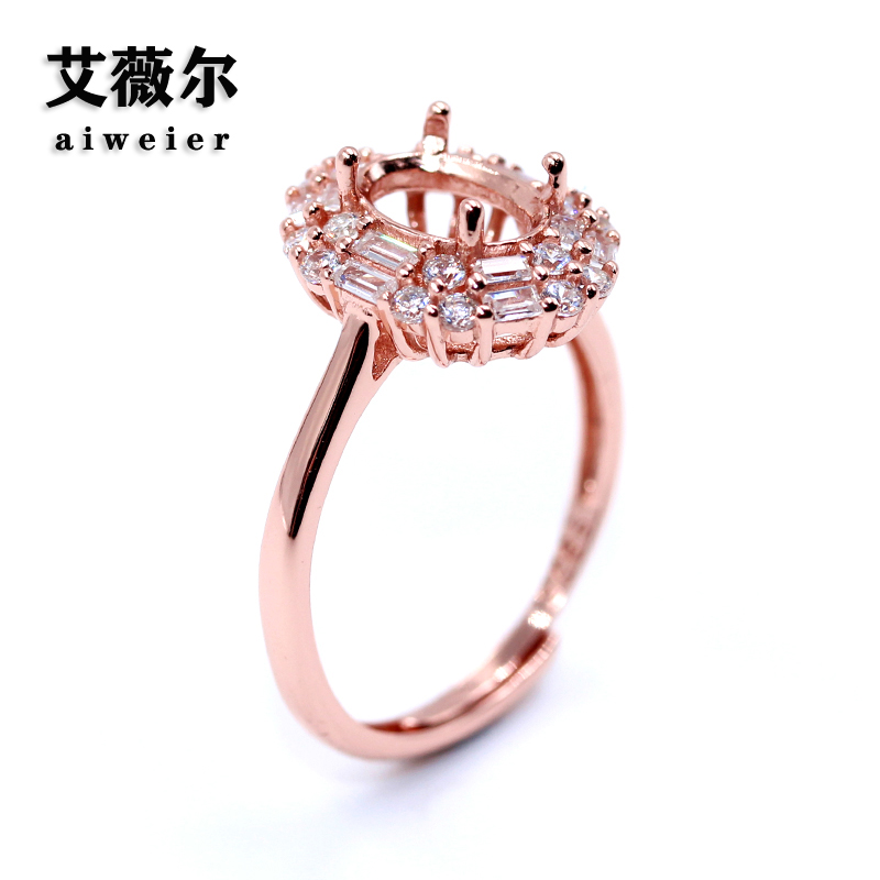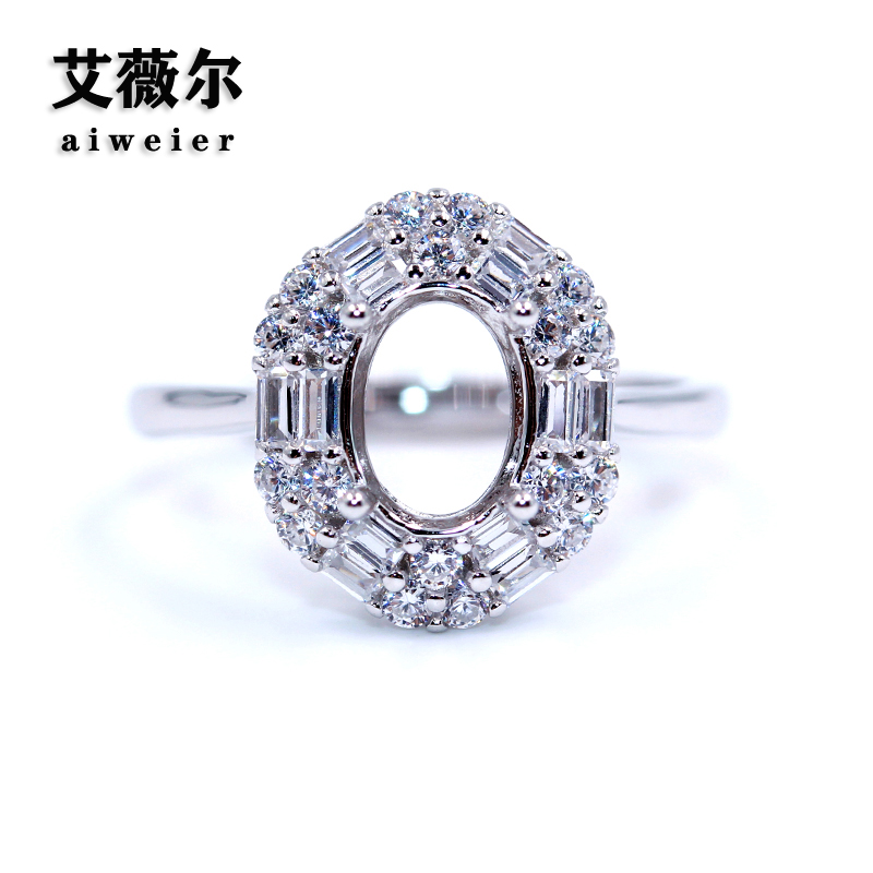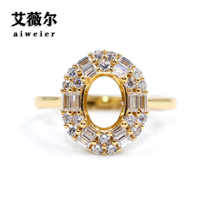 精工S925纯银戒指空托轻奢戒托定制代宝石玉石镶嵌18k金6*7-6*8mm