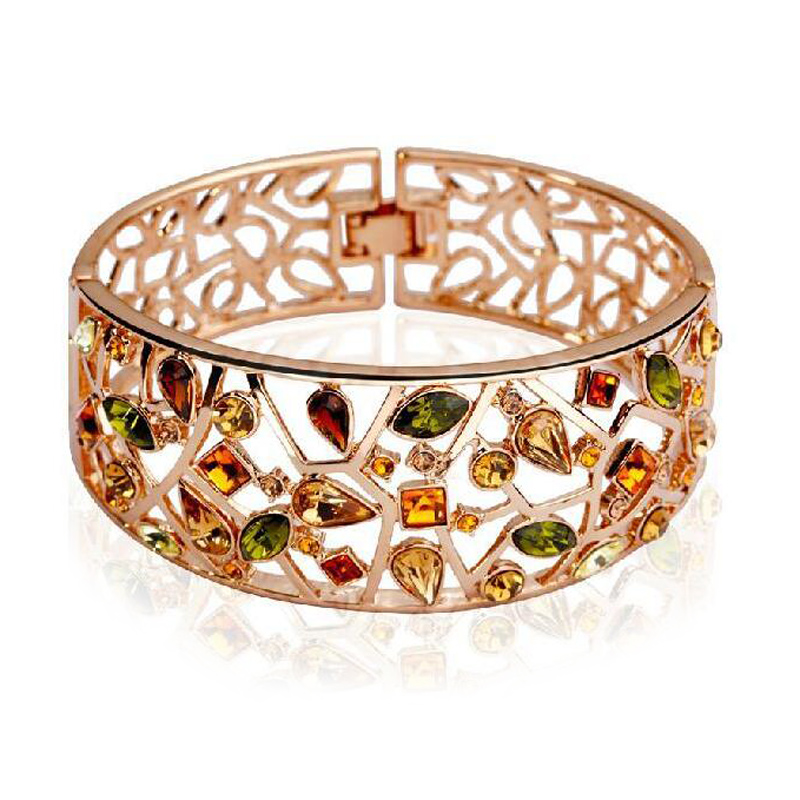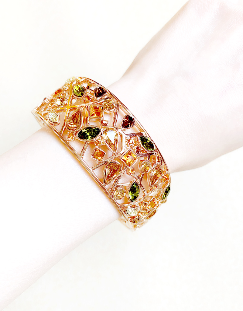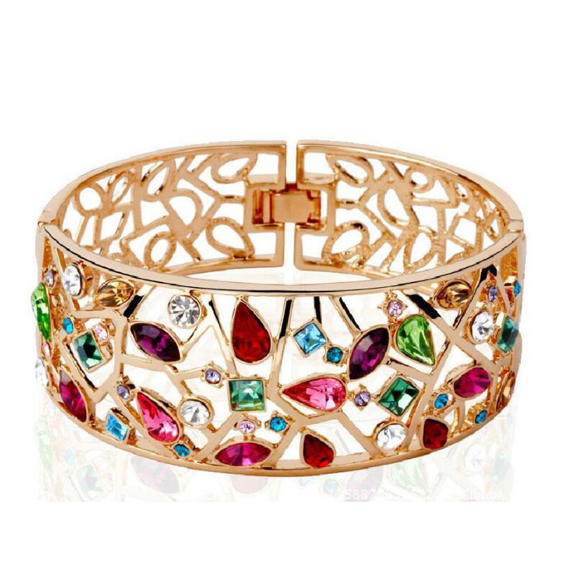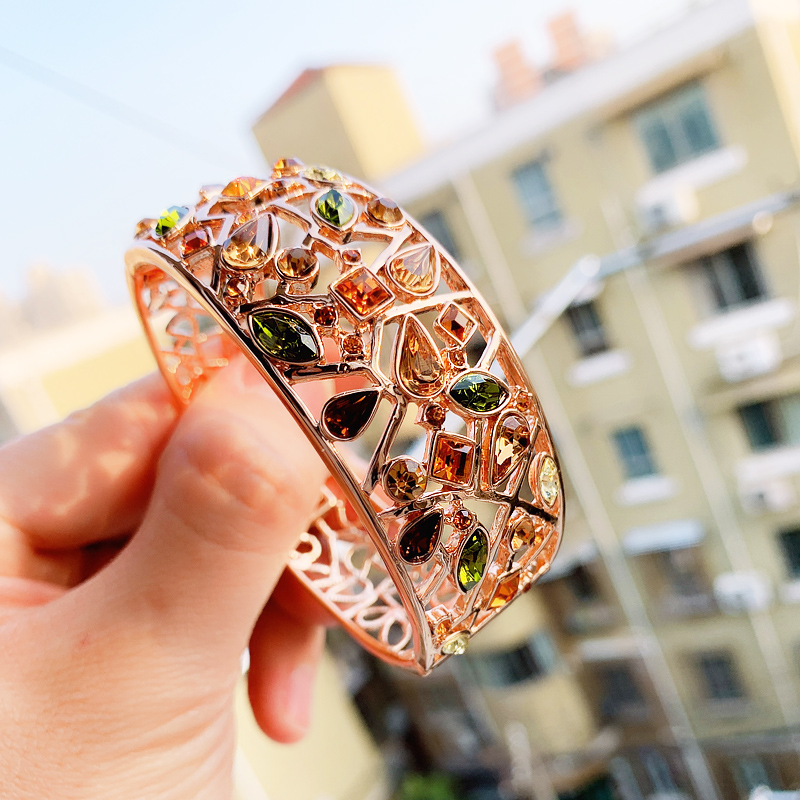韩国时尚波西米亚彩色系水晶锆石手指镂空复古夸张加粗大号手镯