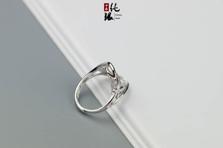 简约纯银925银复古戒指托空托定制镶嵌琥珀活口女戒托10*12