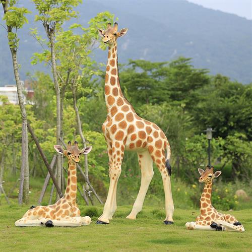 仿真动物长颈鹿雕塑园林景观小品摆设玻璃钢模型大型摆件室外装饰