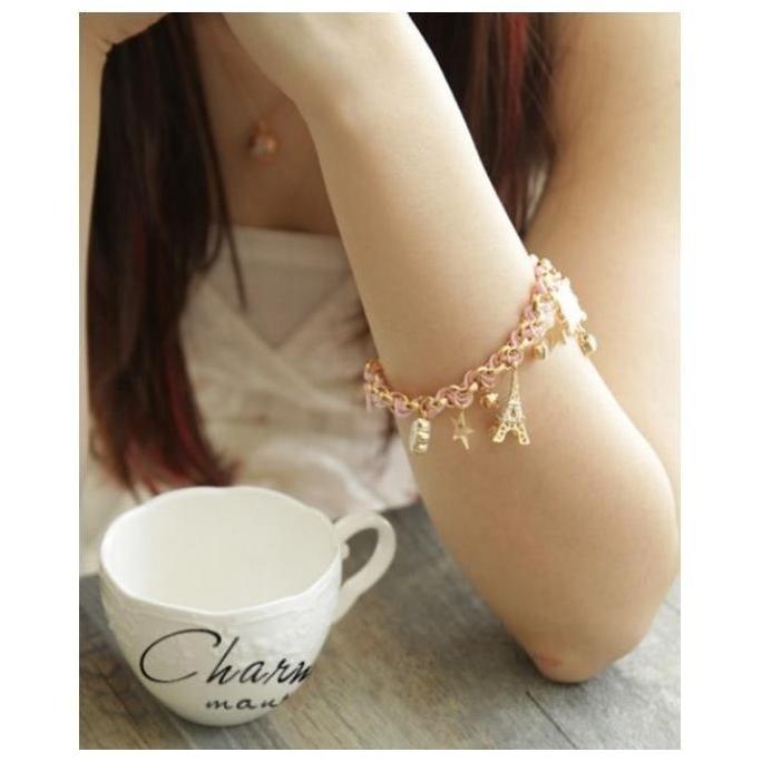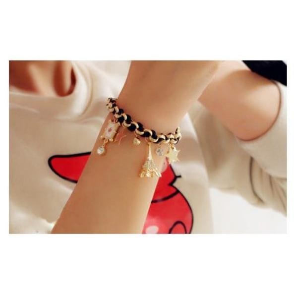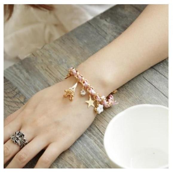 韩版时尚饰品 埃菲尔铁塔星星花朵扑克牌皮 爱心手链脚链两用