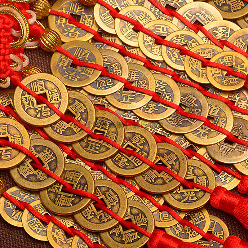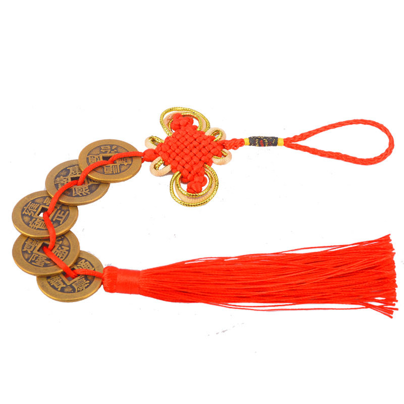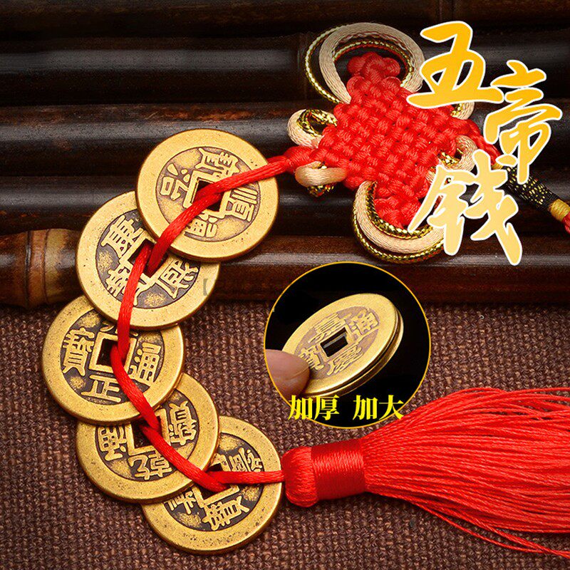 纯黄铜加厚五帝钱挂件红色绳中国结六帝十帝钱流苏吊坠卧室内门口