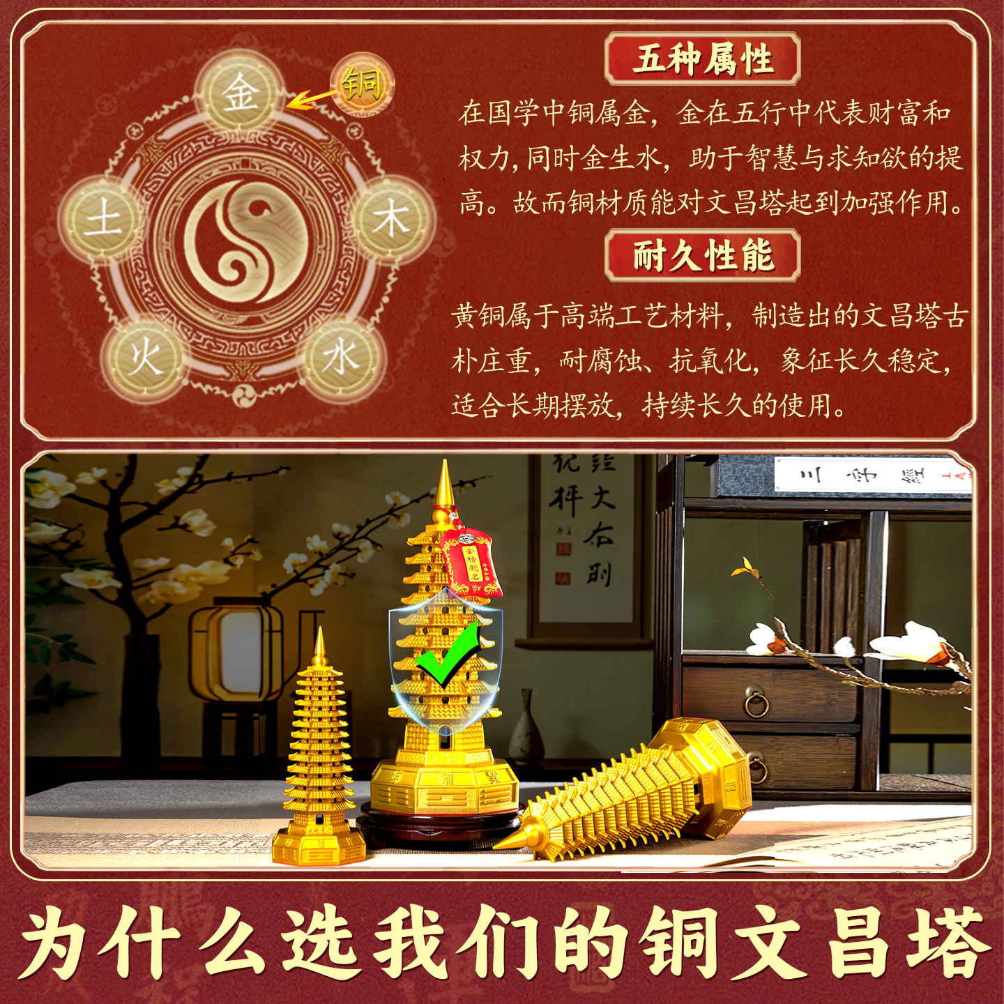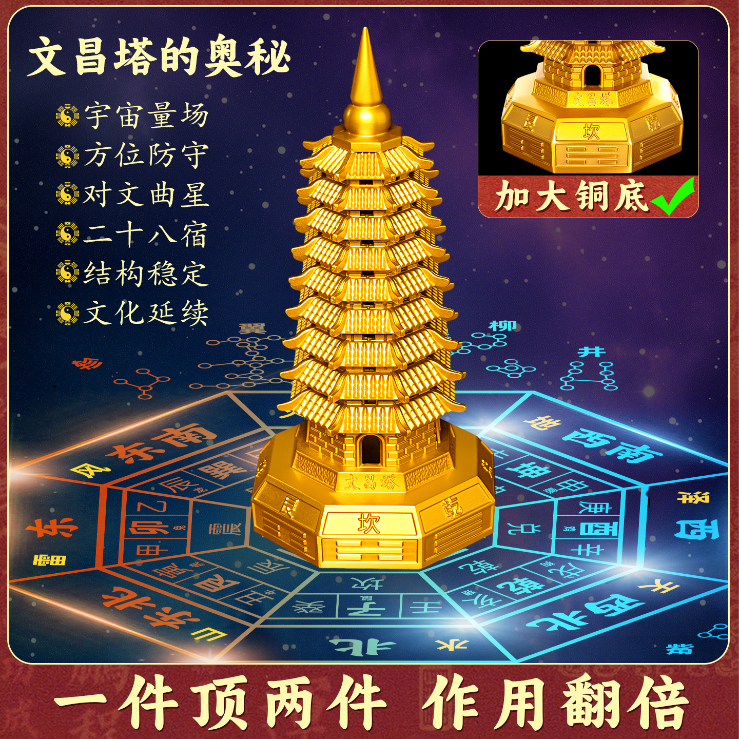 文昌塔摆件纯铜13层的纯黄铜制十三层2025七九层旗舰店宝塔文峰塔