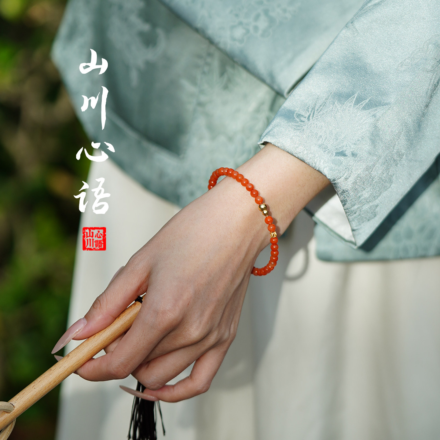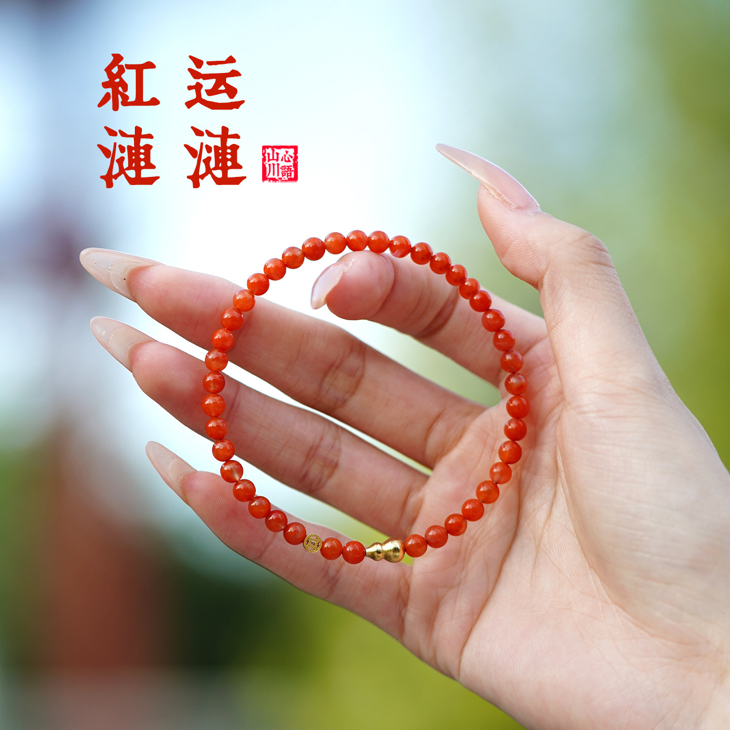 天然南红手串红玛瑙小米珠手链女红色马年本命年铜钱转运珠叠戴