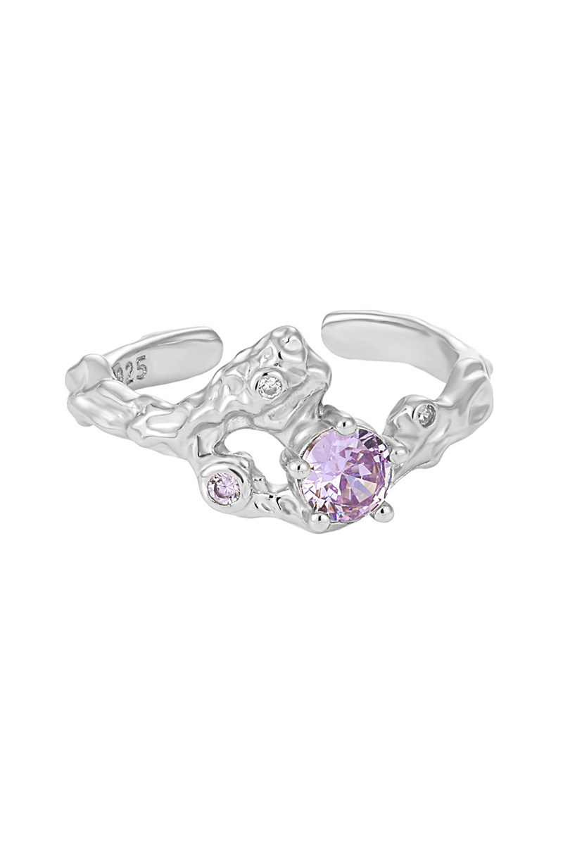【ANSS】925纯银 不规则设计感肌理微镶锆石开口戒指女冷淡风指环