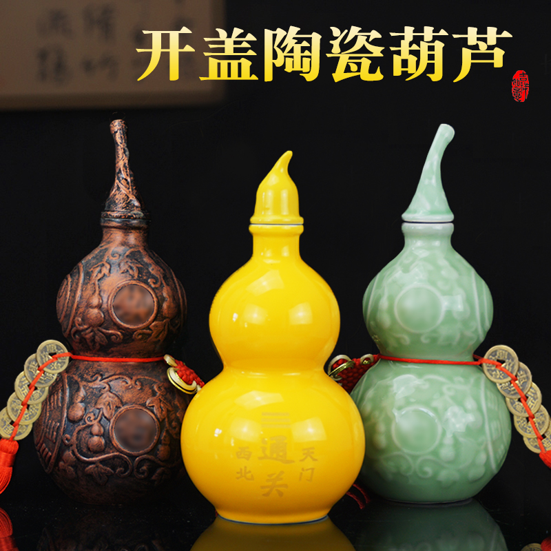 陶瓷葫芦摆件厨房在西北火烧天门开盖黄色大小号家居客厅玄关装饰