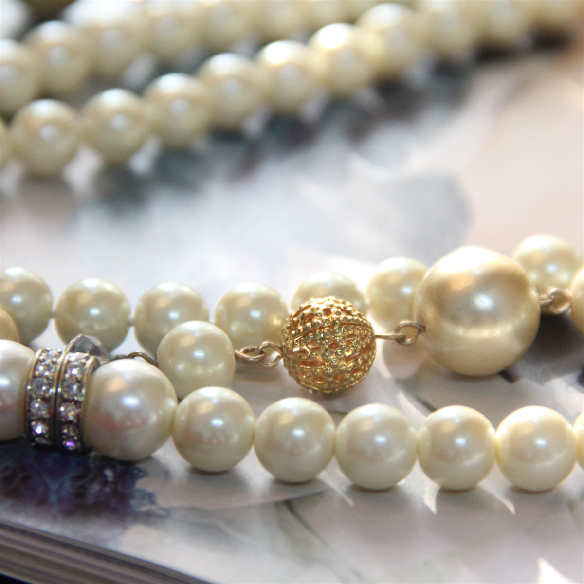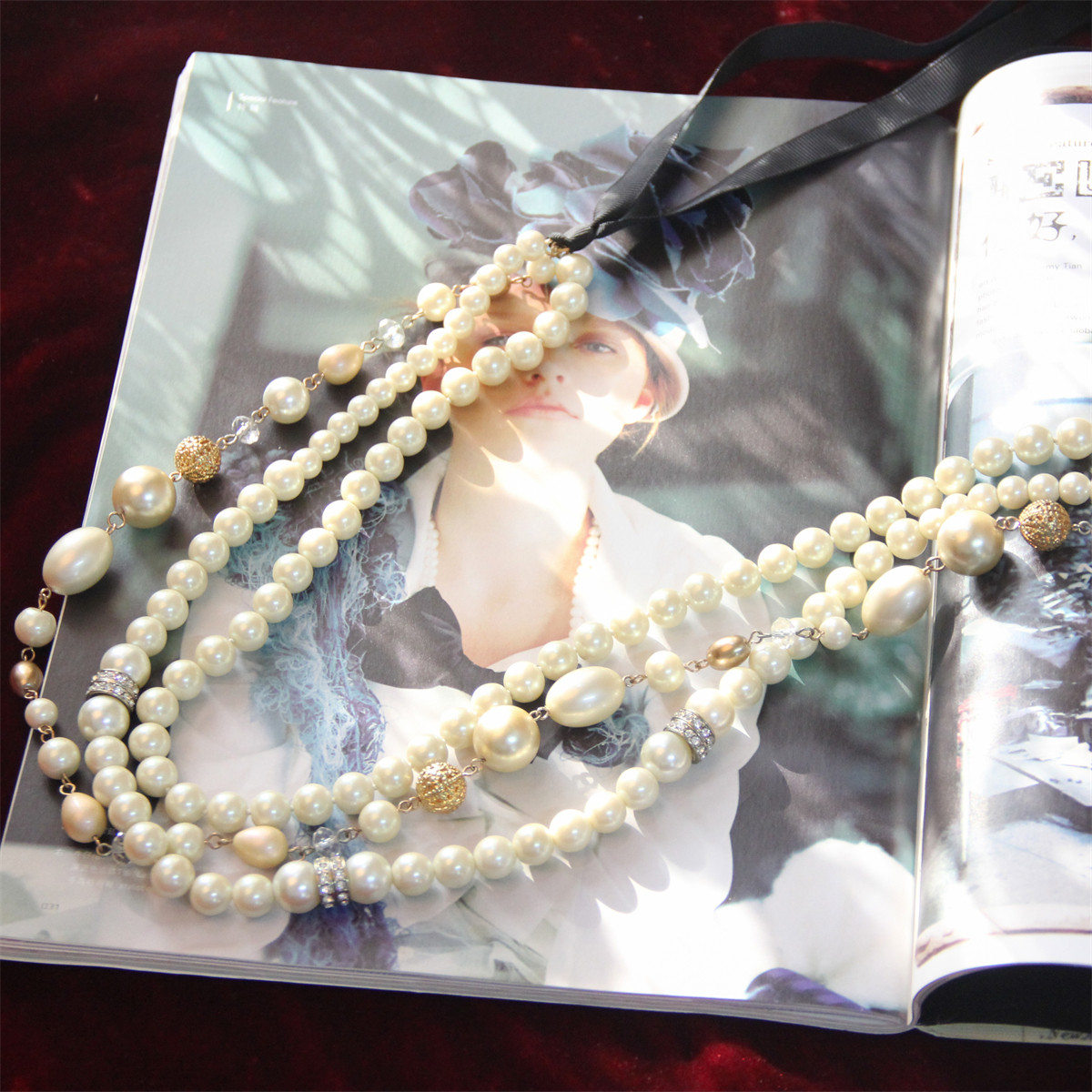 CAROLEE麝华欧美超质感彩色珍珠三层绝美系绳晚宴礼服贵妇级项链