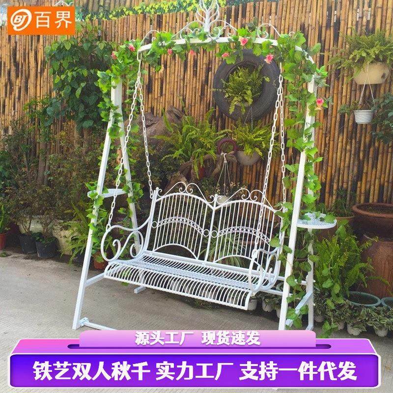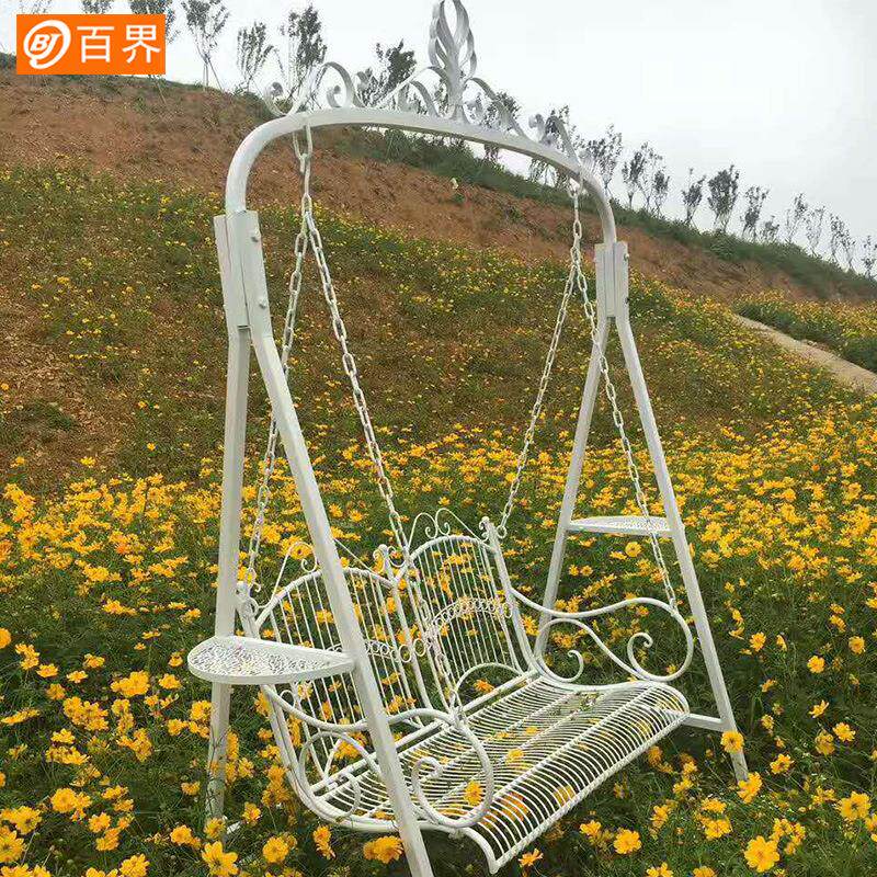 百界铁艺双人秋千儿童室外摇篮庭院阳台吊椅户外草坪活动摄影道具