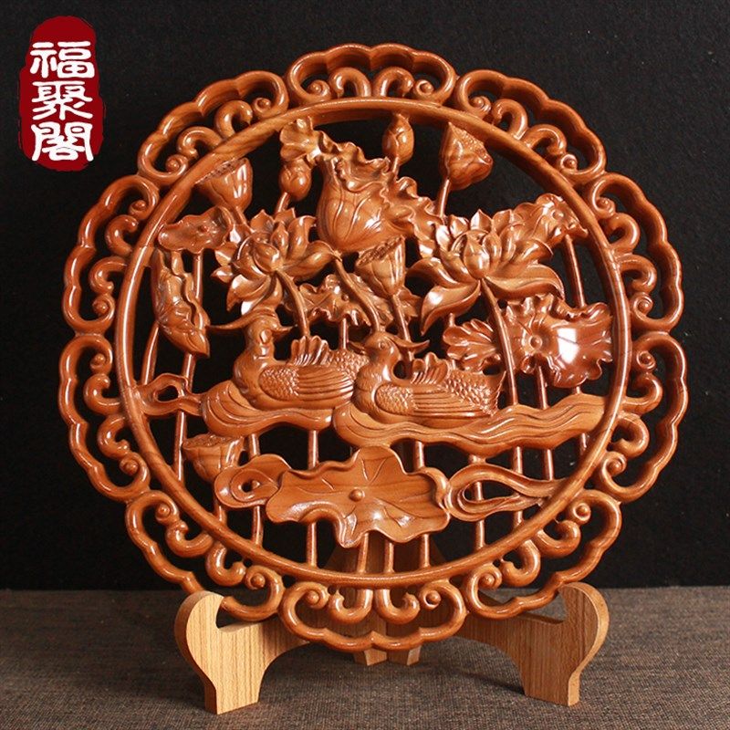 桃木鸳鸯图案摆件卧室挂件一对实木质装饰品婚房结婚床头客厅摆设