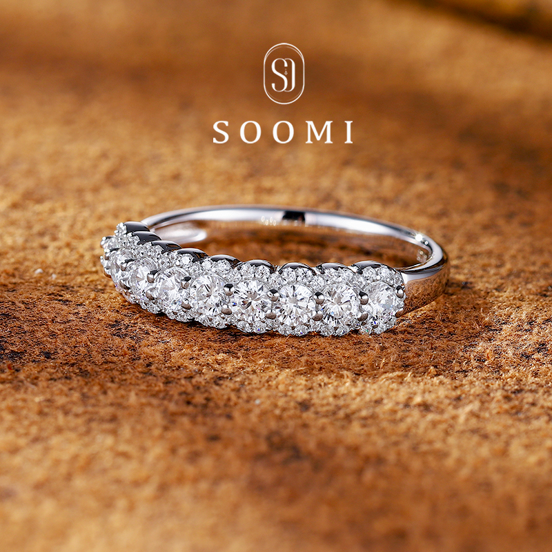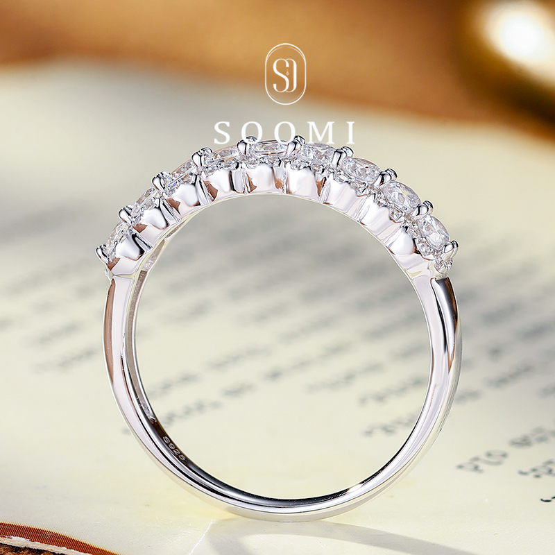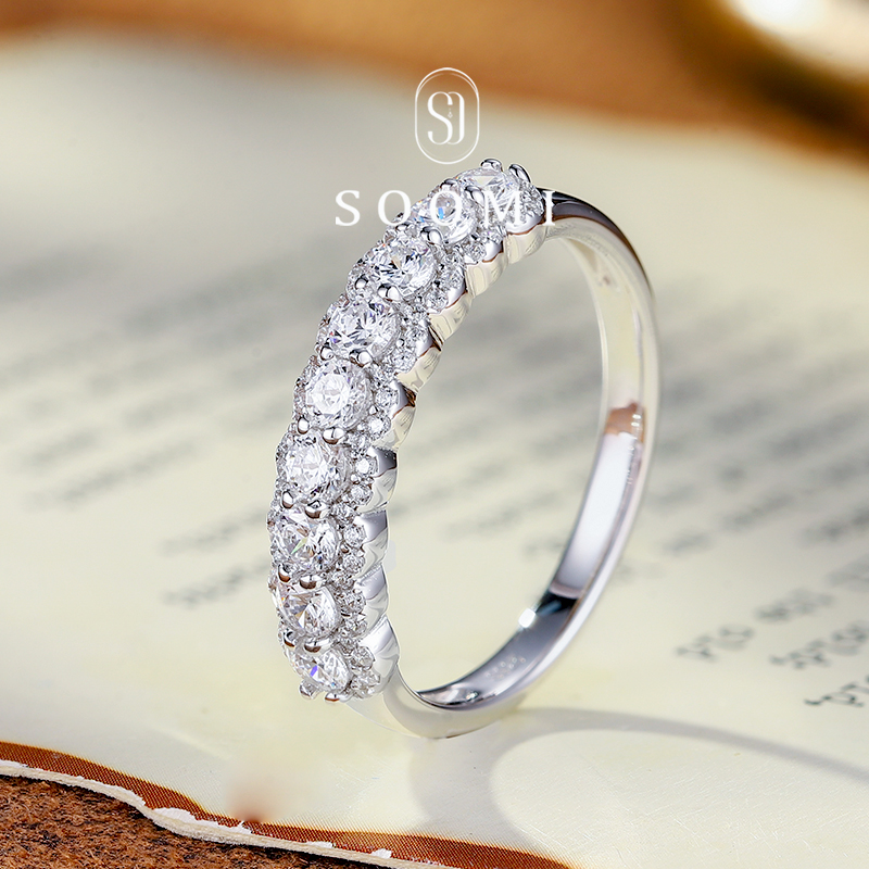 【新品85折 寰宇】钻石切排戒7A高碳钻D色女款银镀18k金戒指礼物