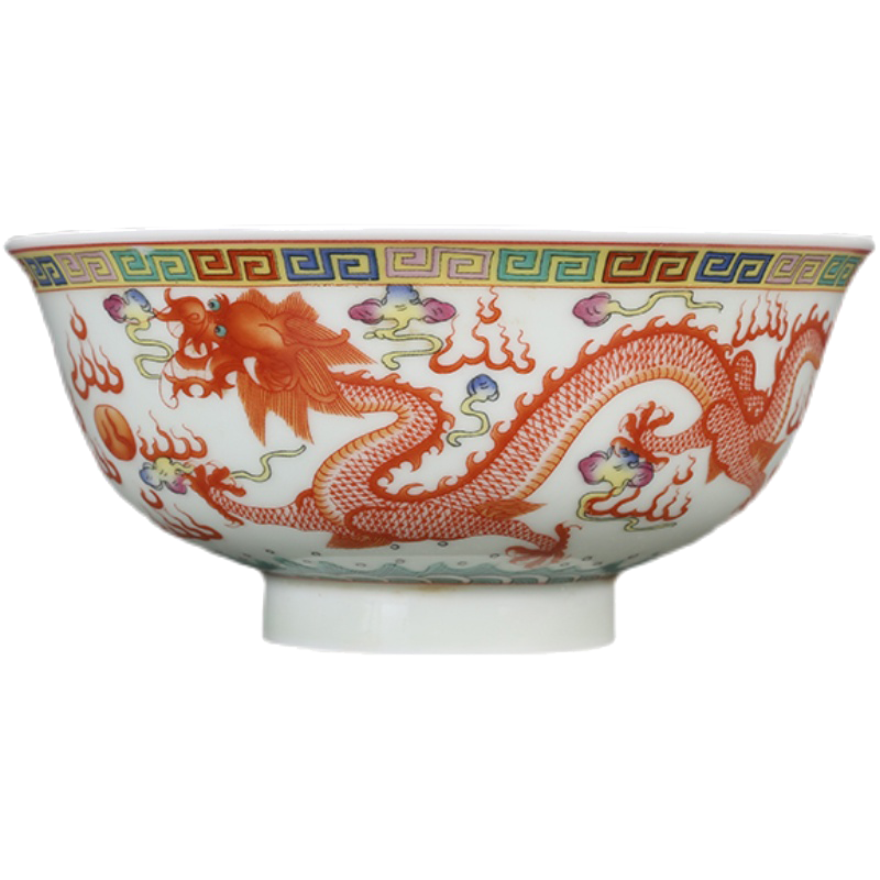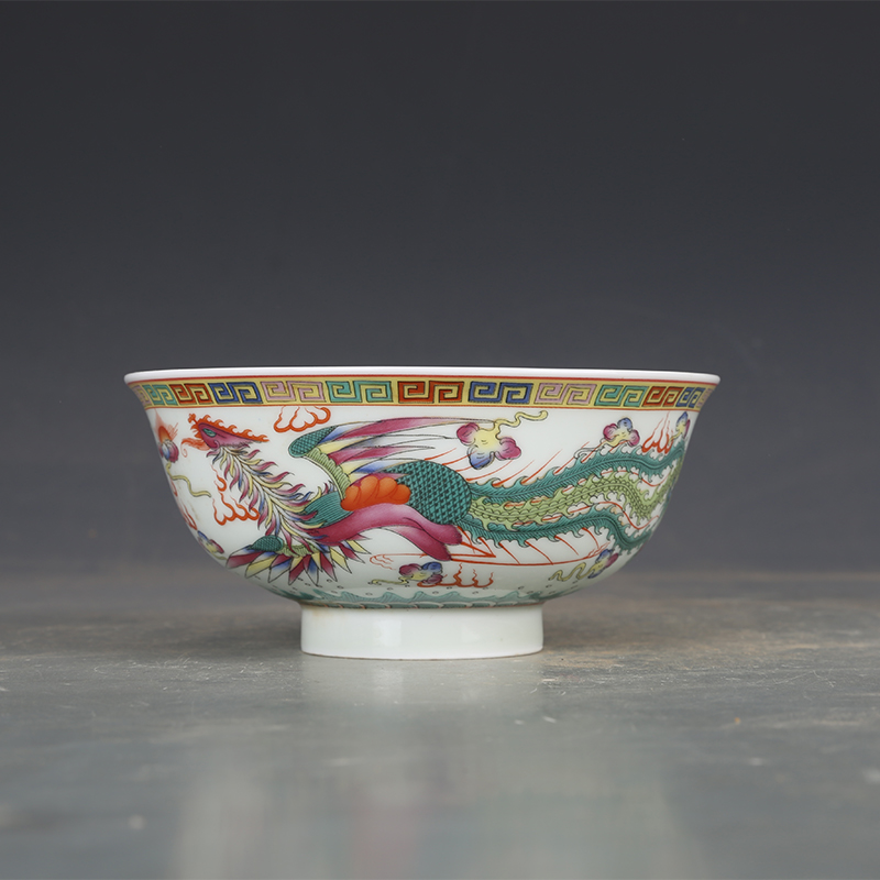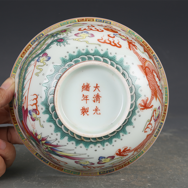 清光绪瓷器粉彩龙凤纹碗古董古玩明清老瓷器旧货老货收藏摆件