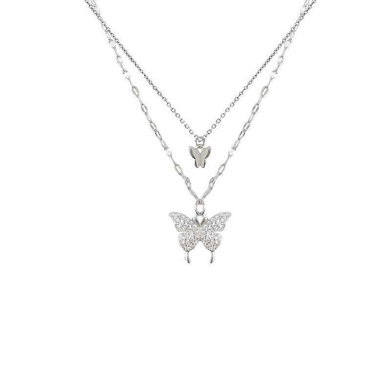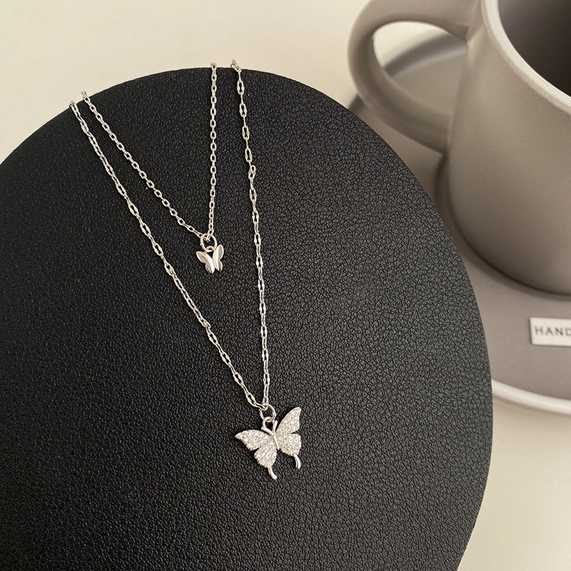 双层叠戴蝴蝶项链女轻奢小众高级感锁骨链配饰气质新款卫衣毛衣链