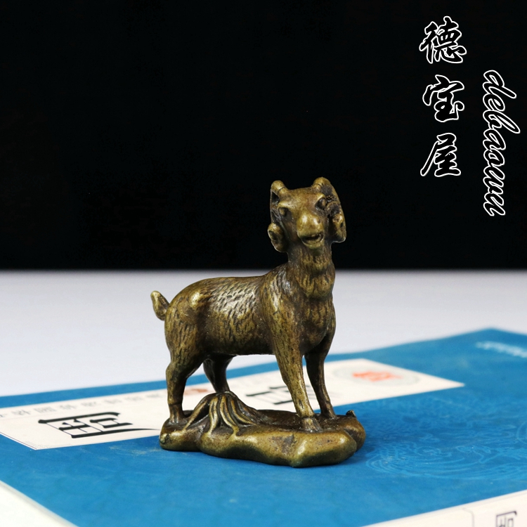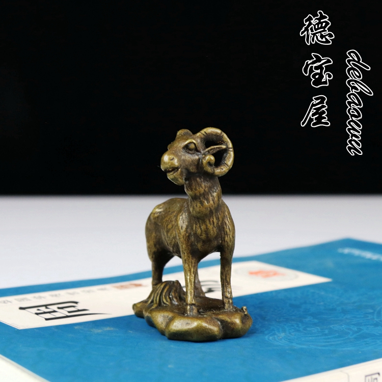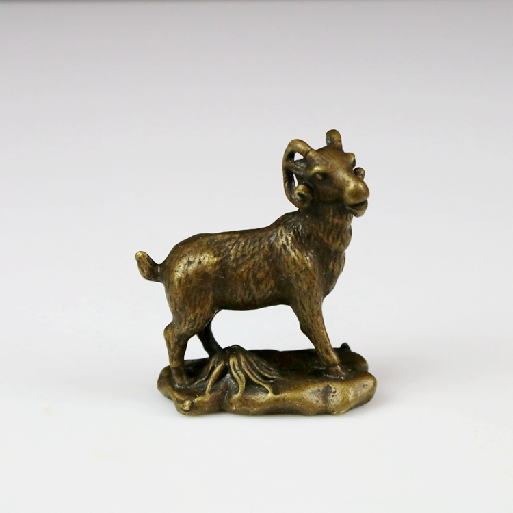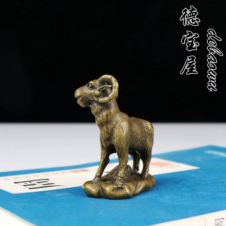 纯黄铜实心十二生肖羊铜山羊复古小铜件铜器古玩杂项铜羊风水摆件