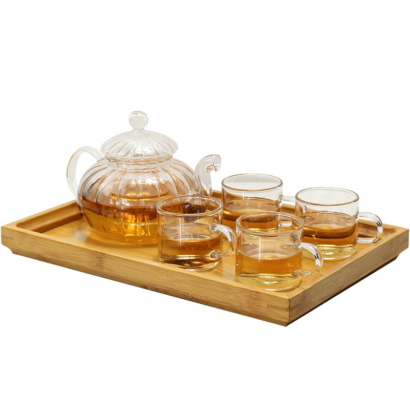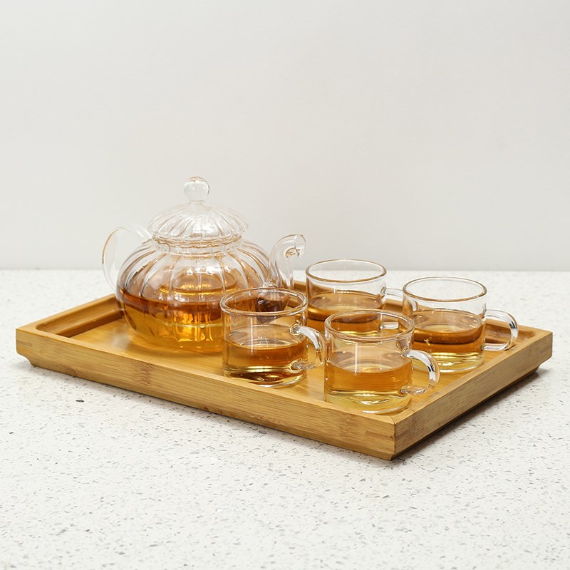 茶壶透明玻璃茶杯木托盘组合瓷砖展厅软装饰品样板房摆设简约现代