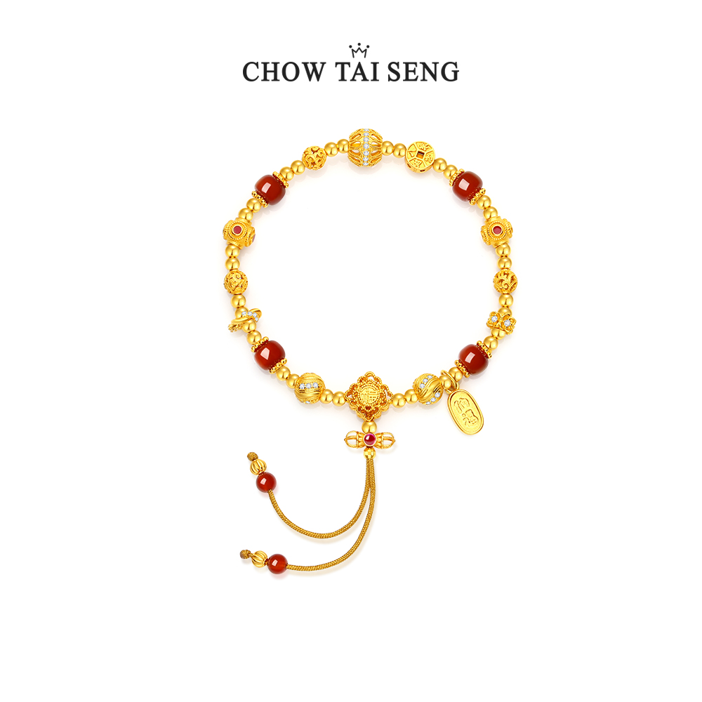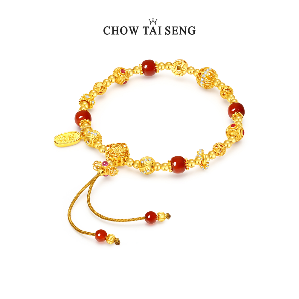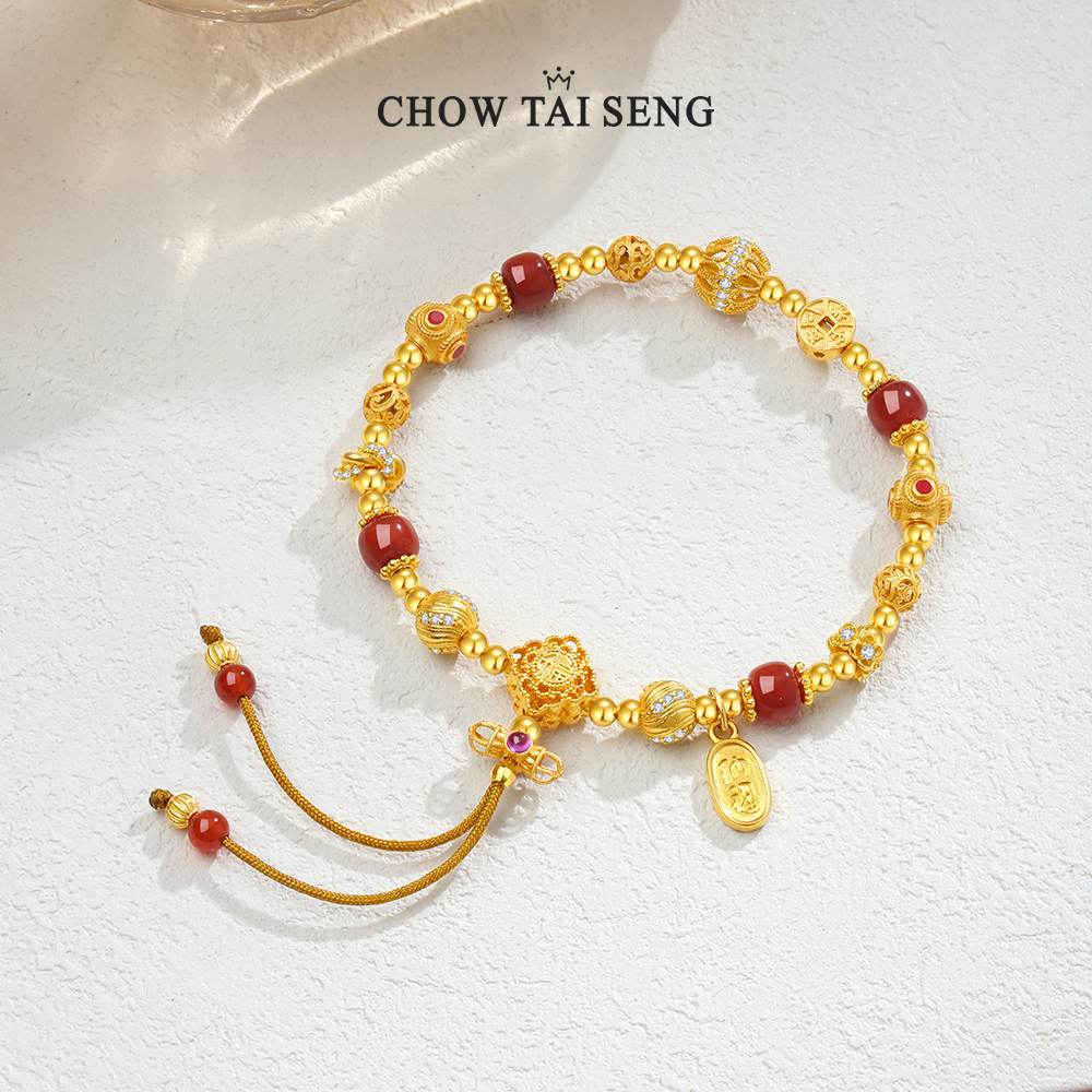 周大生八方来财纯银S925手串红玉髓国潮手链新中式生日礼物送女友