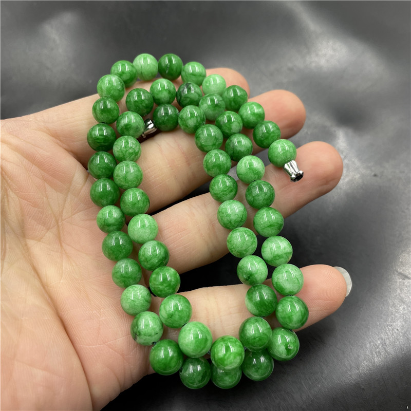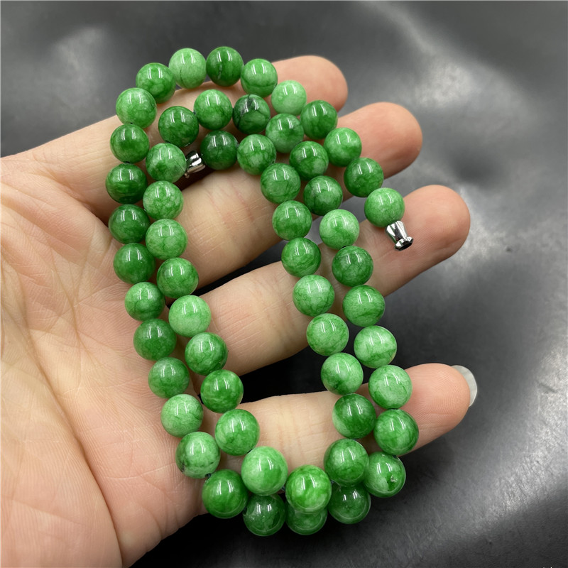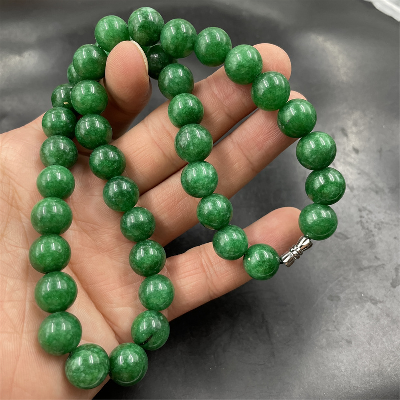 四海玉器 8毫米干青铁龙生翠玉圆珠项链 女款女式锁骨项链 特价