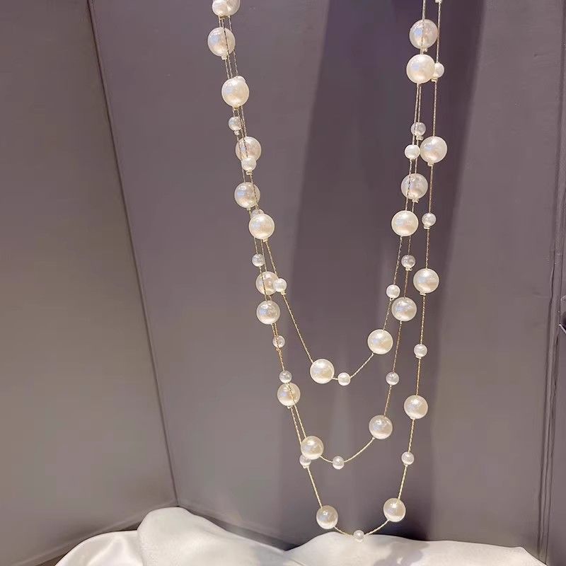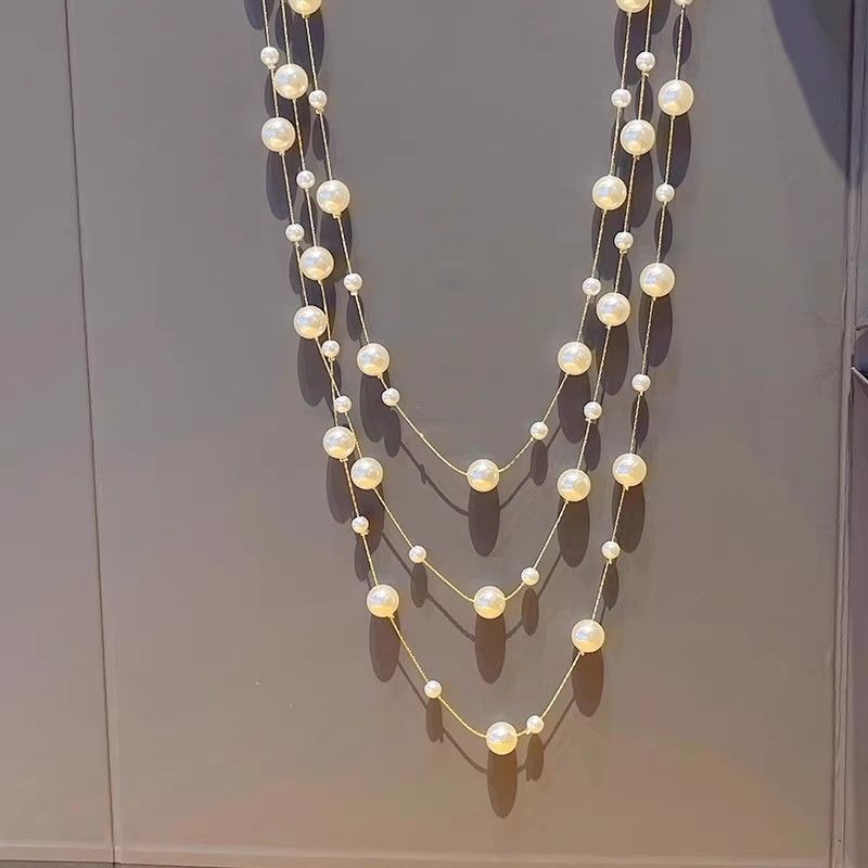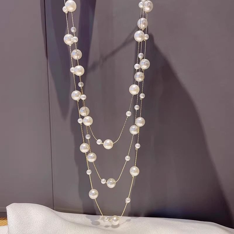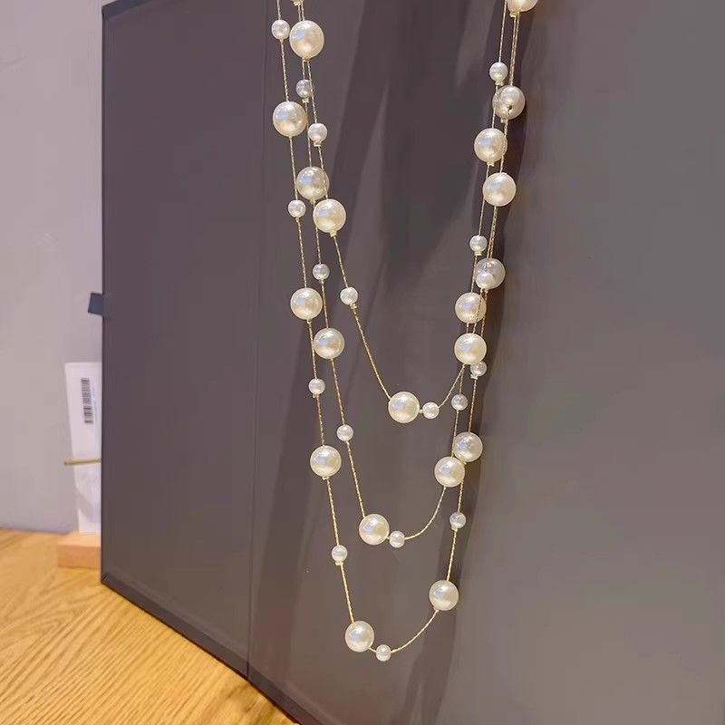 珍珠毛衣链女长款配饰气质满天星设计感多层旗袍2025年新款项链