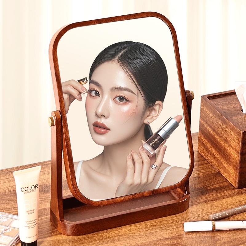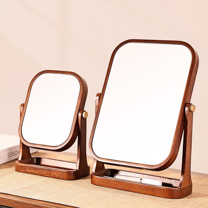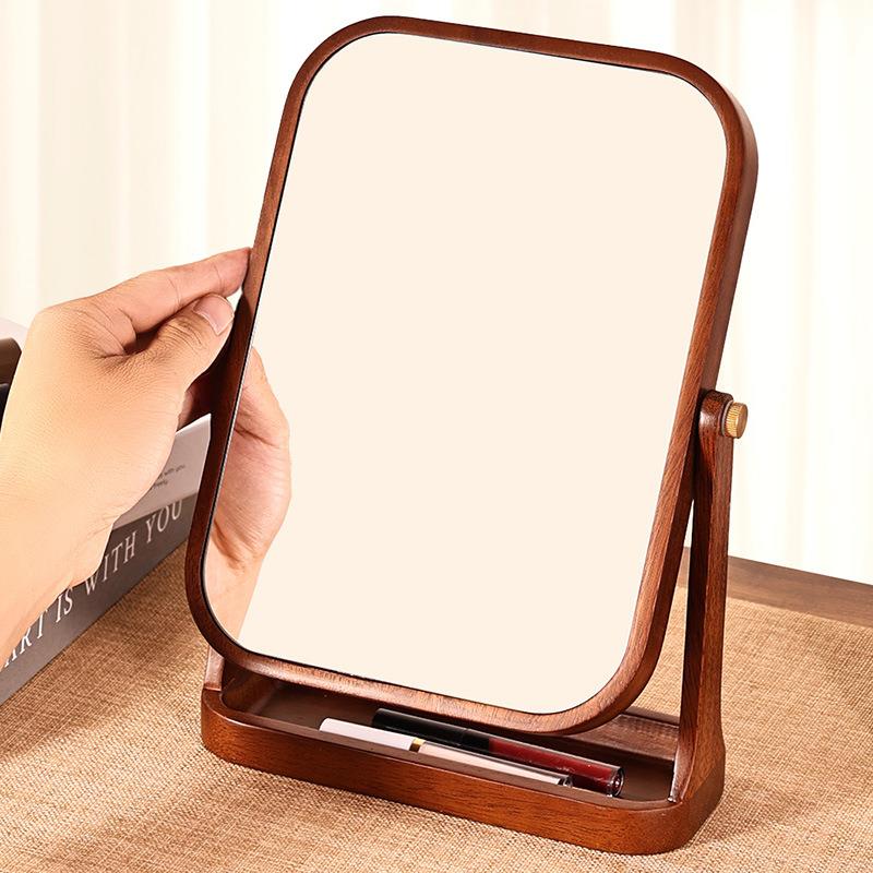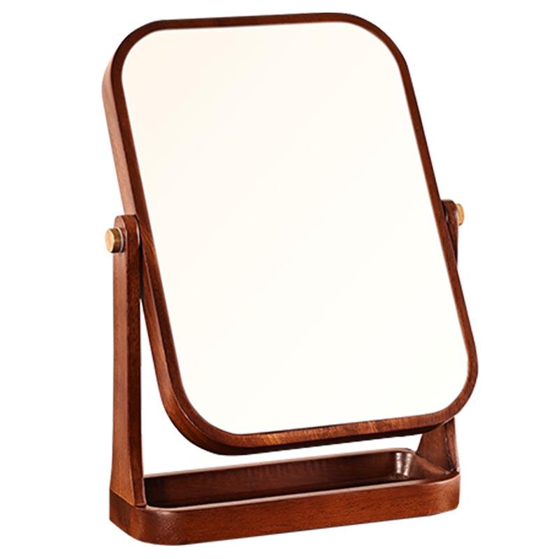 圆角设计胡桃木方形单面镜子化妆镜台式化妆镜带托盘可置物送礼