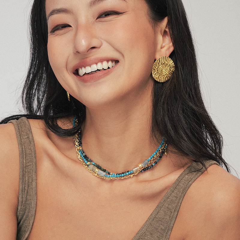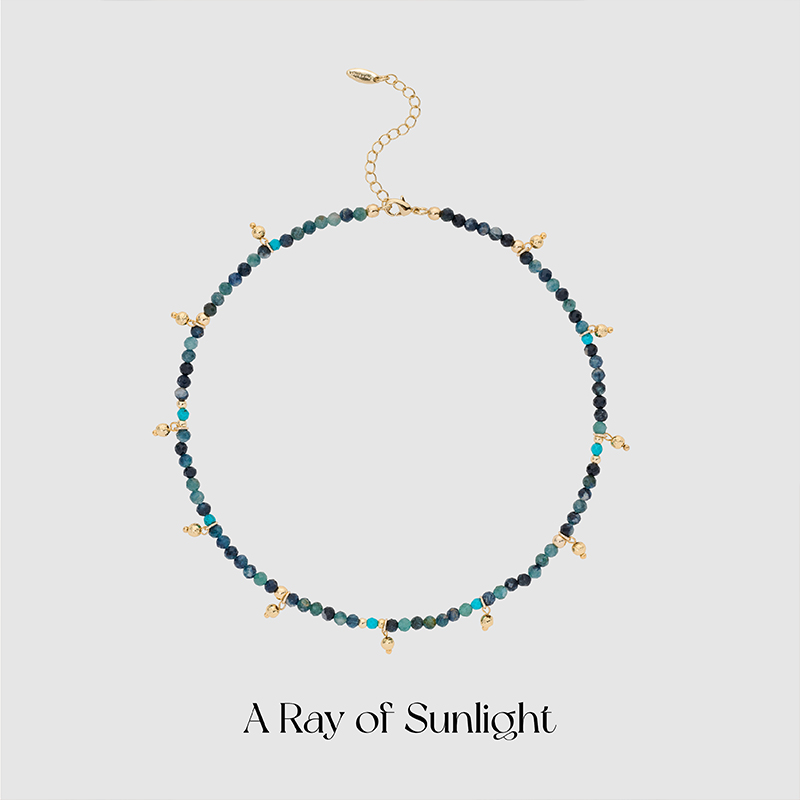 A ray of sunlight蓝色松石串珠项链女轻奢小众高级感叠戴锁骨链