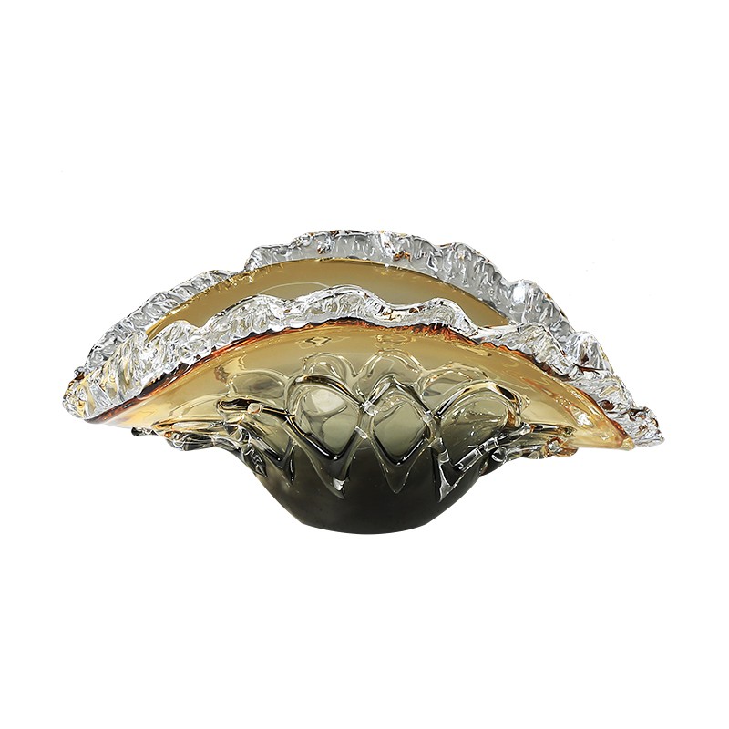 琥珀色艺术玻璃果盘摆件现代轻奢客厅大厅售楼处样板房茶几收纳盘