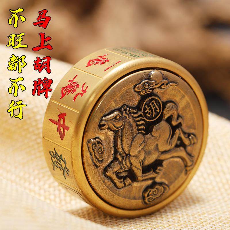 纯黄铜手把件桌面摆件旋转麻将指尖陀螺马上胡赢钱趣味减压神器