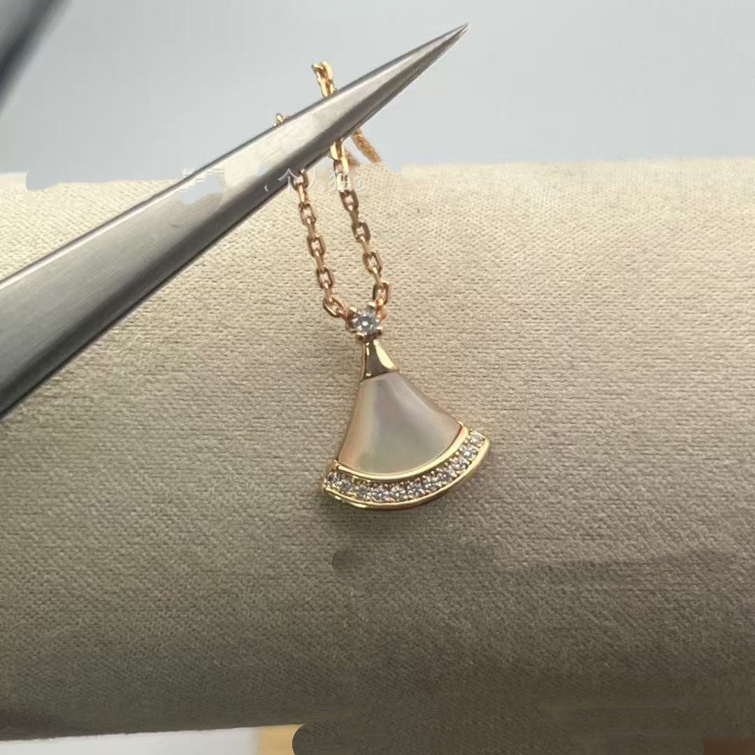 小裙子项链女高级设计感扇形锁骨链小众轻奢白贝母玫瑰金吊坠颈链