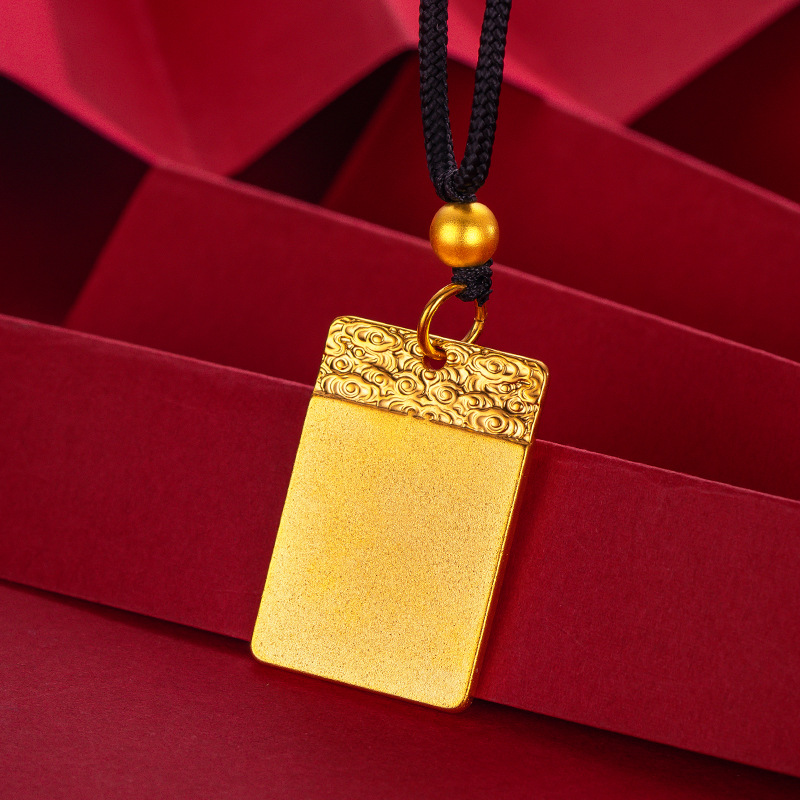 越南沙金无事牌吊坠男女同款古法实心祥云方牌转运平安挂件不掉色