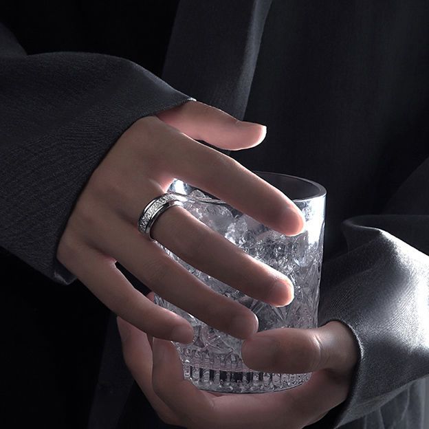 雾凇纹钛钢戒指男ins个性潮流时尚帅气男生情侣小众指环女不掉色
