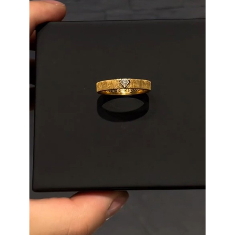 中古黑金做旧拉丝三角仿锆石戒指小众设计轻奢高级2025新款食指戒