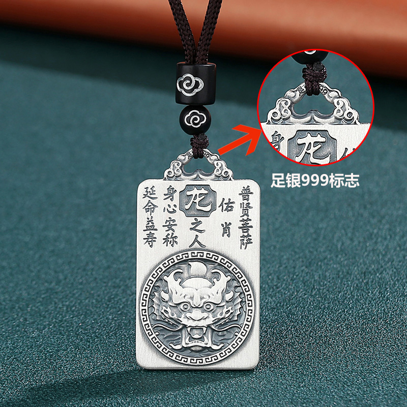 苏州银楼12生肖S999纯银八大守护生肖无事牌项链男情侣款复古礼物